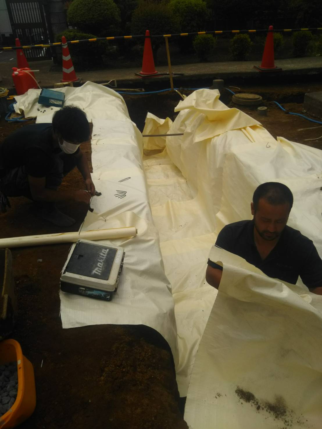次に、泥やゴミが浸透施設に流入しないように透水シートでかこいます(*^^*)