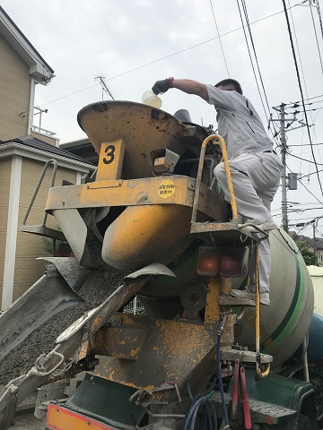 計量カップに入れて生コン車に投入し、よく混ぜてから普通に打設するだけです(*^▽^*)