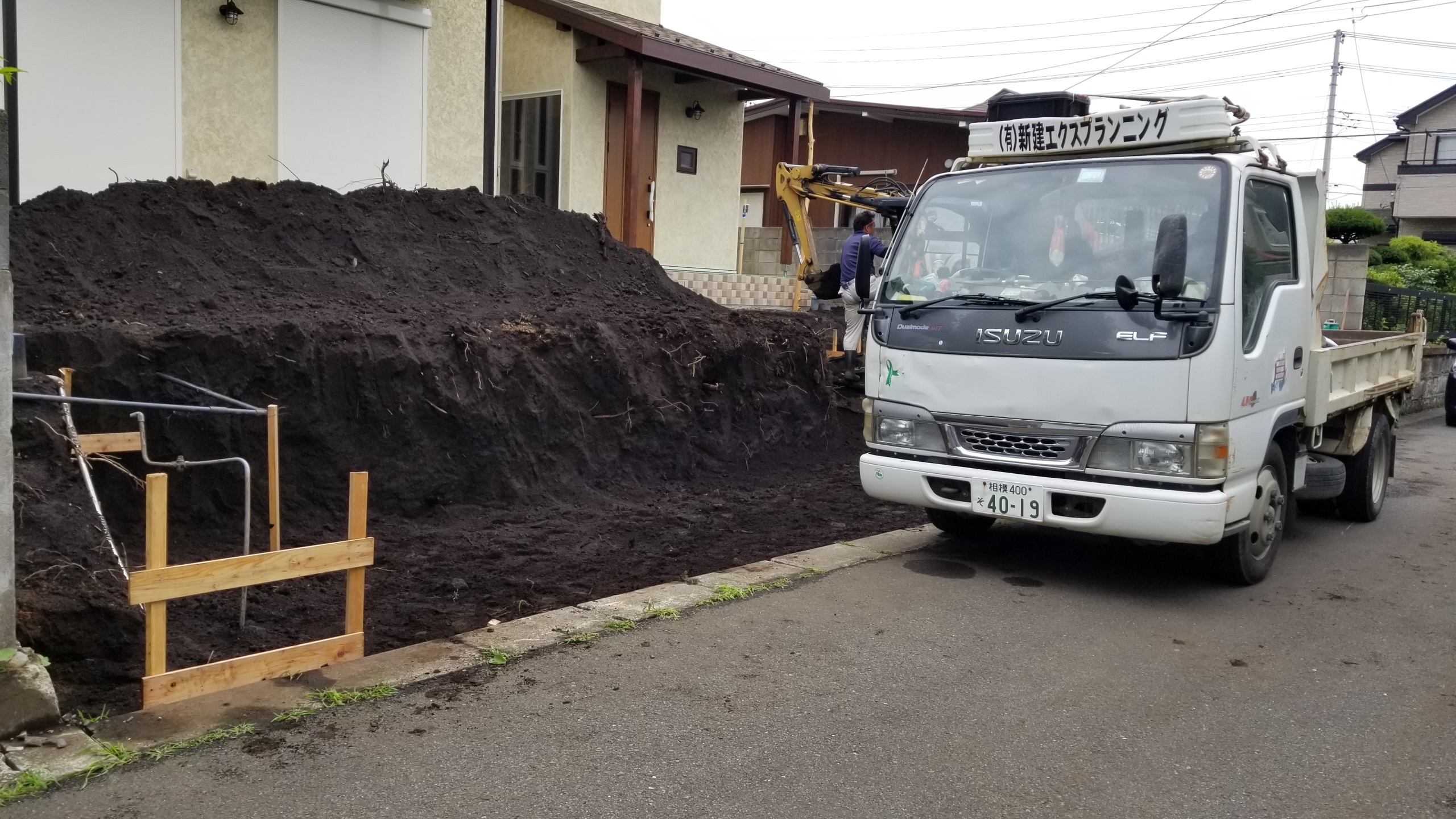 土は雨でぬれてしまうと沼のようになってしまいますから、一気に作業を進めている今日この頃であります。