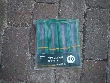 U字の止めピンと防草シートで施工していきます。