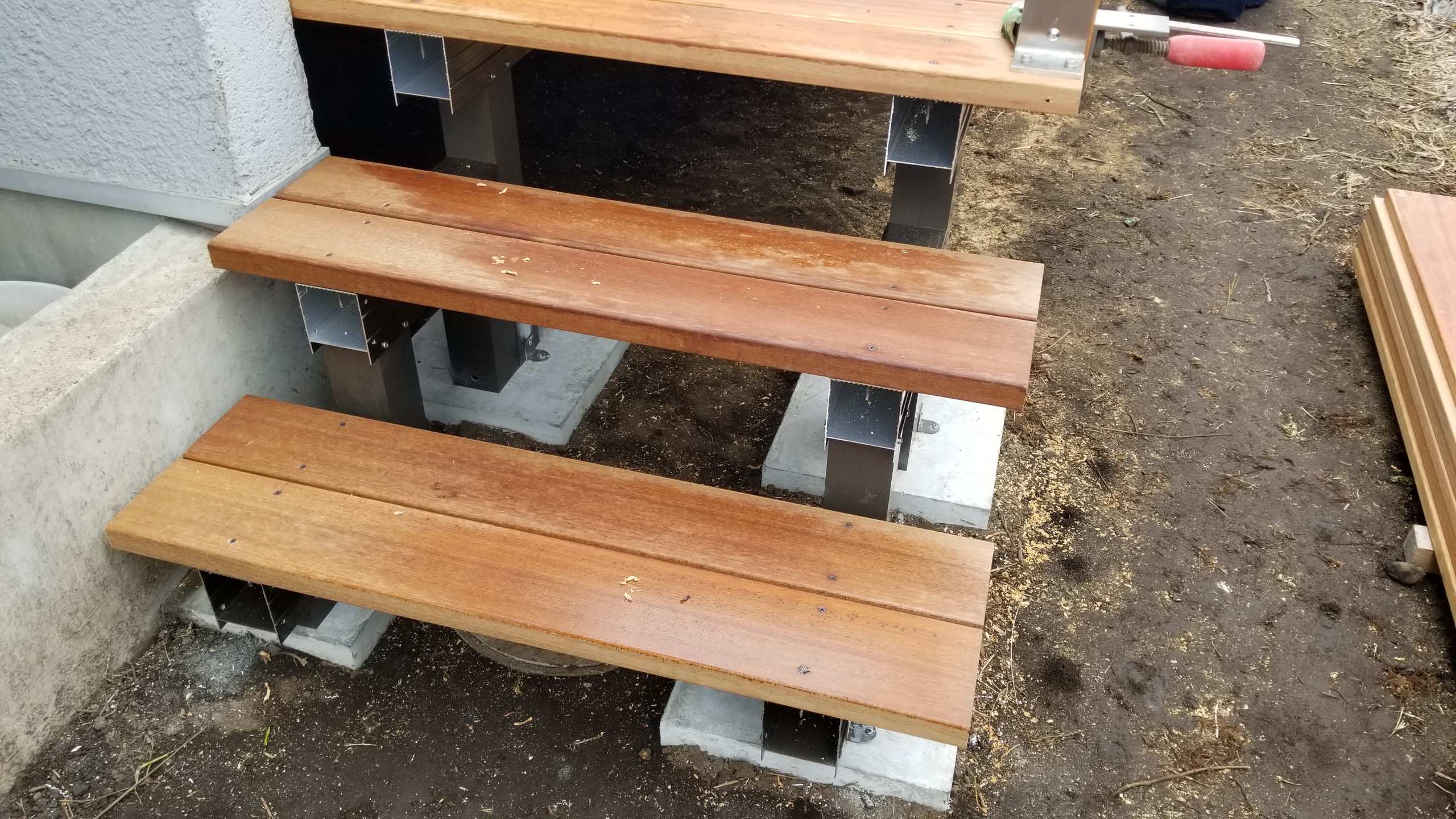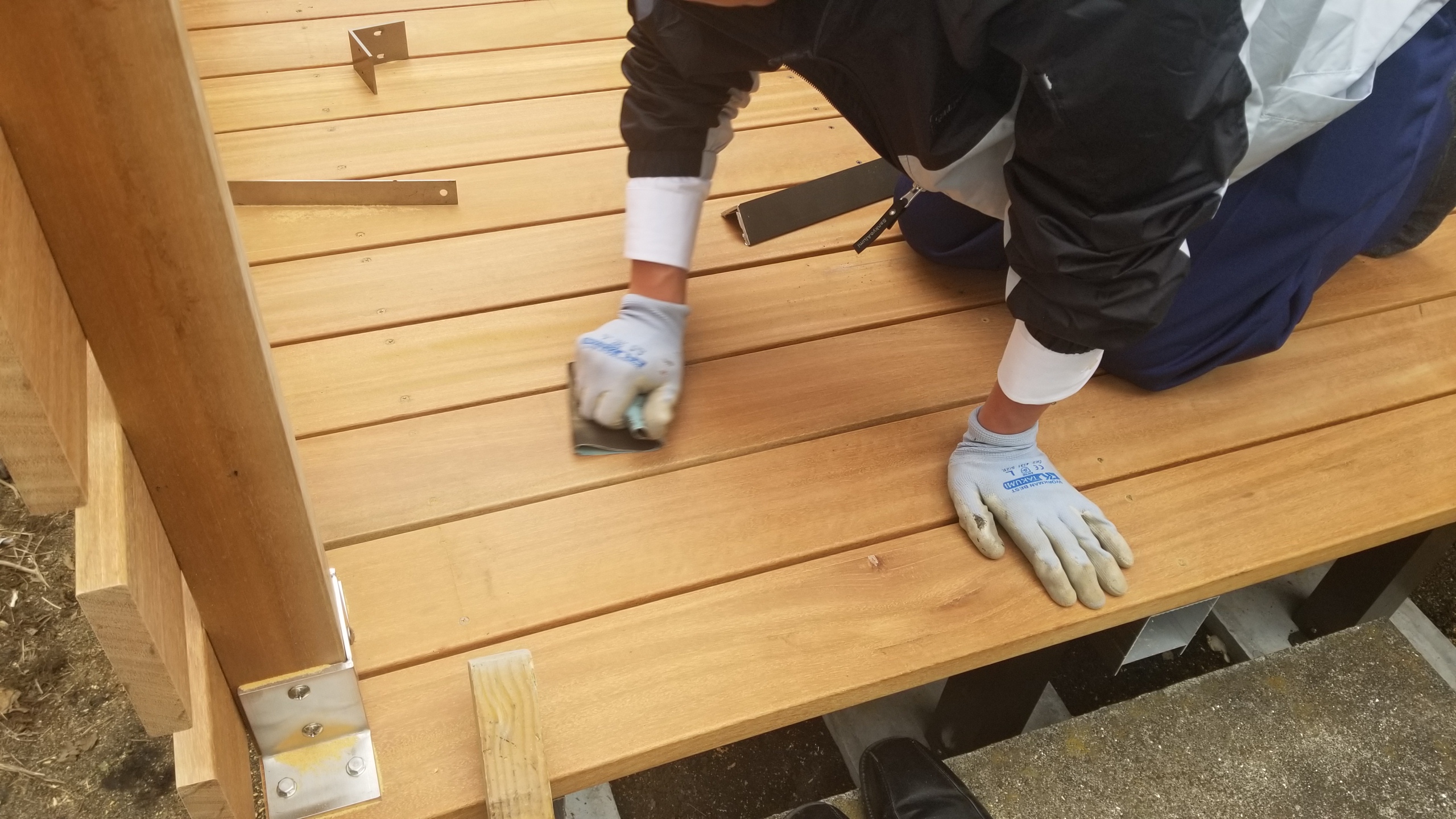 アルミの梁とデッキ材の接合部分もステンレスのネジを使っていますので強度はばっちり!