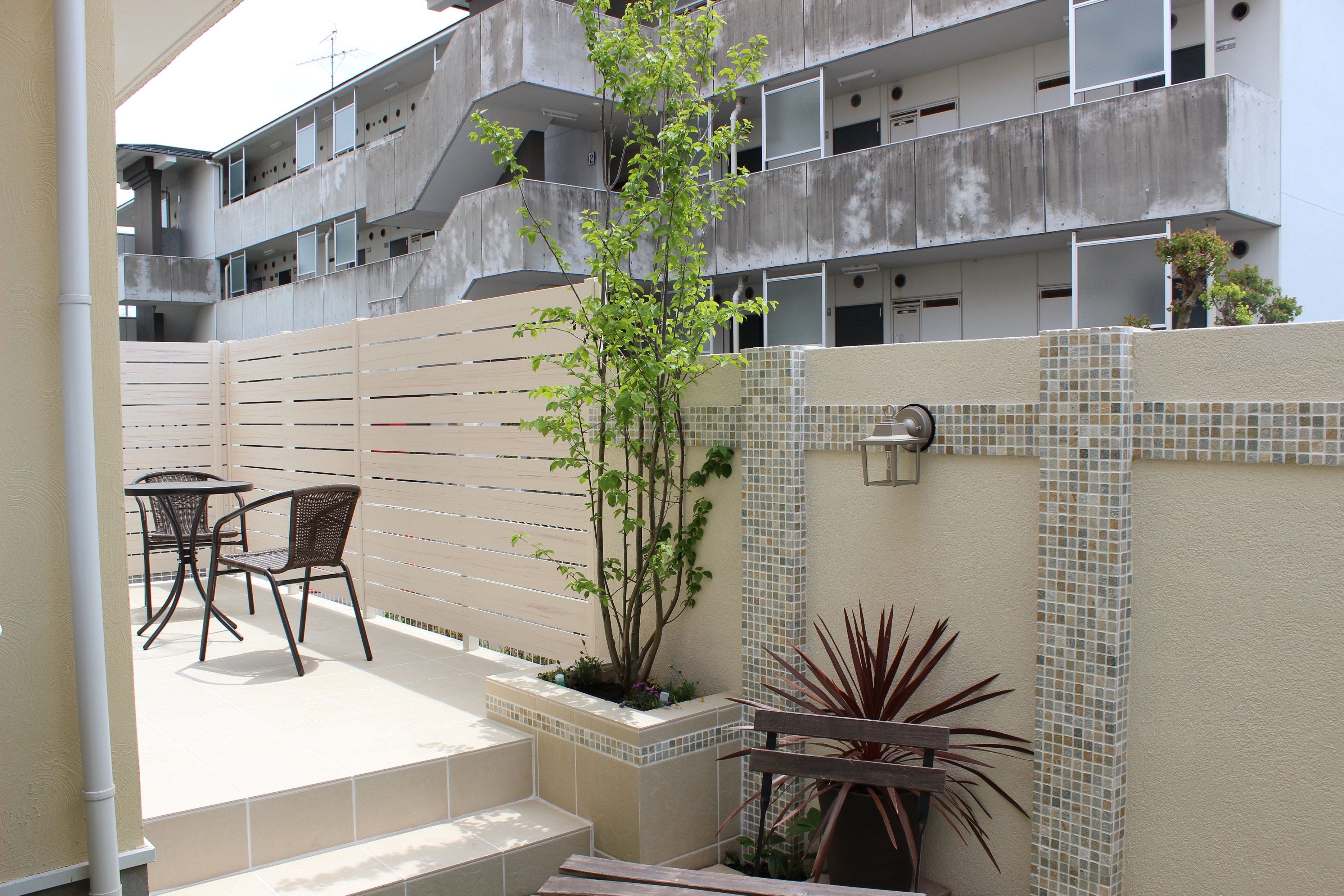 室内から見えるオンリーワンなガーデンテラス、部屋のカーテンを開けるのが楽しみになったと喜んで頂けました。