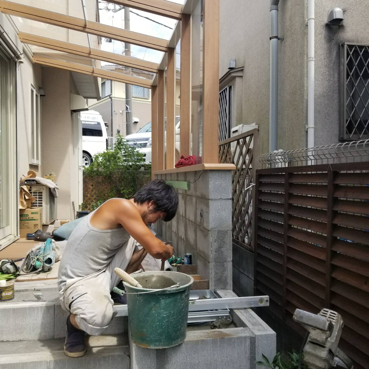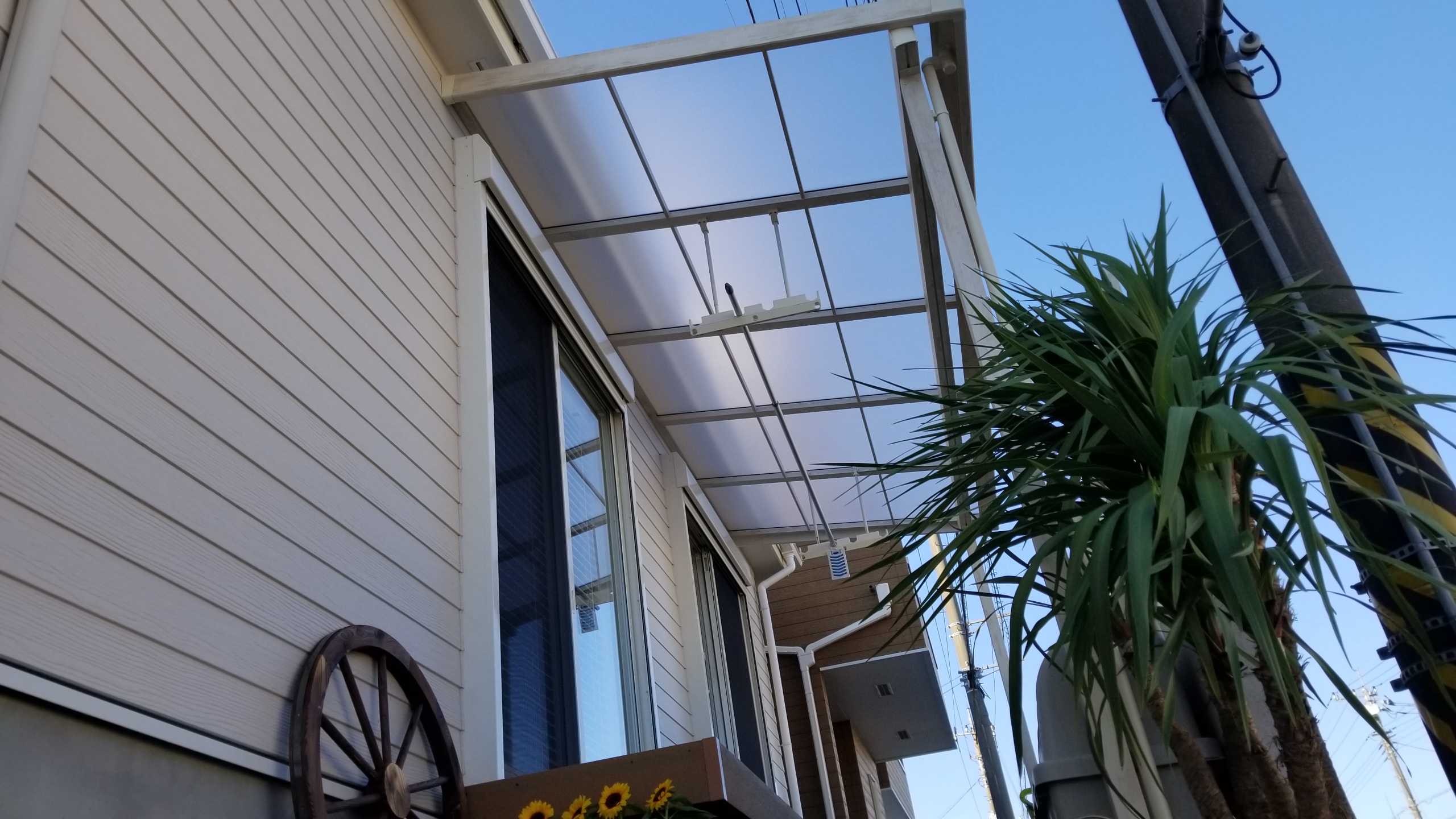 テラス屋根「ココマ」はお洒落で人気のある腰壁タイプをチョイス、
