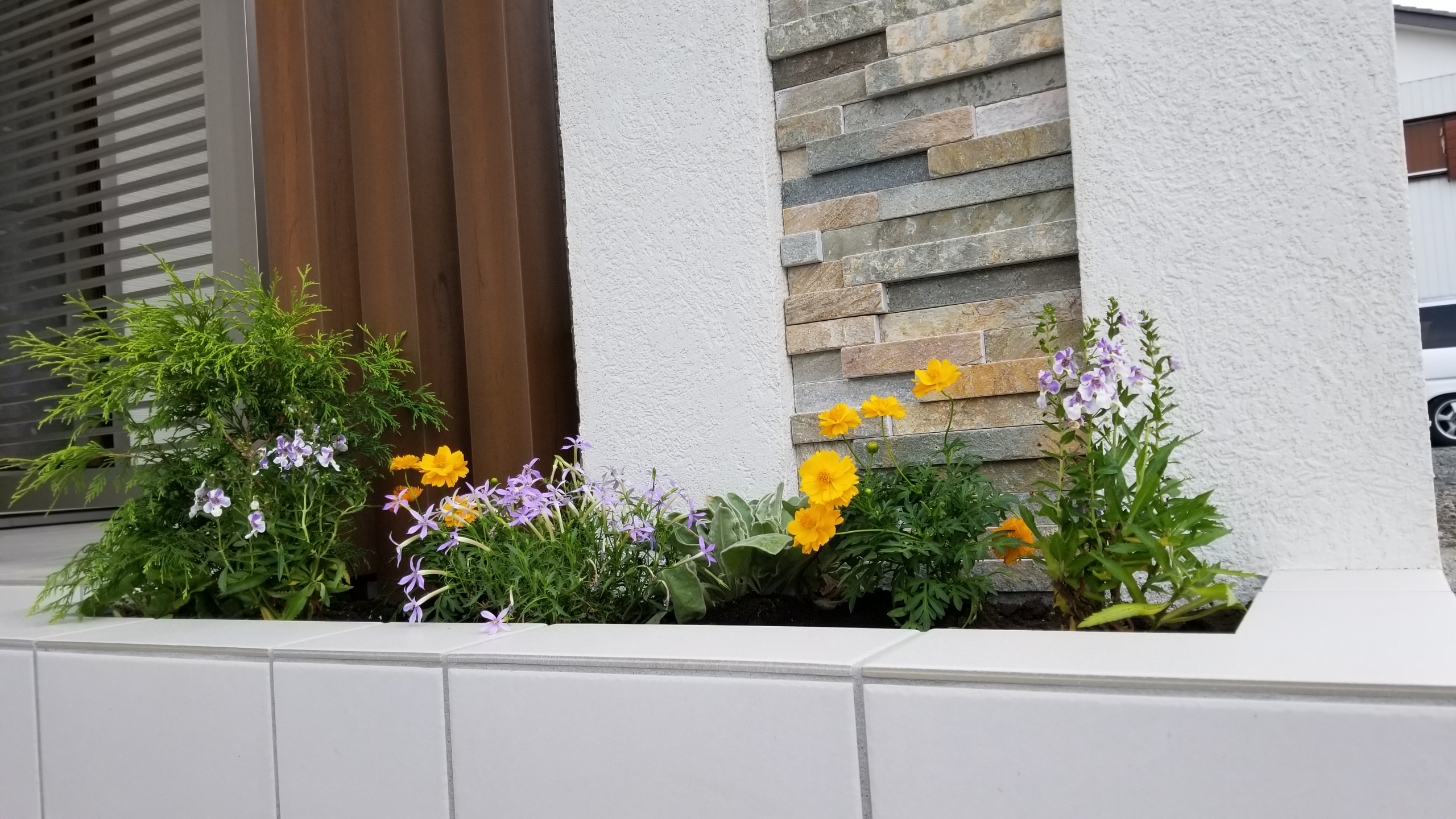 花壇スペースをステップ横に出すなど試行錯誤のあった甲斐あり綺麗に収まることができました(^-^)