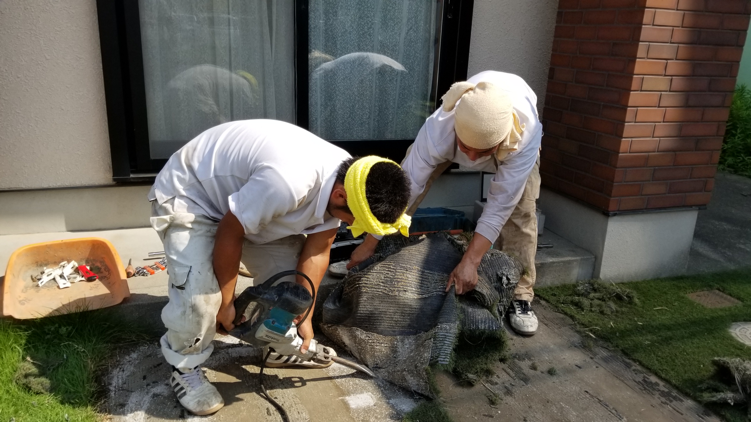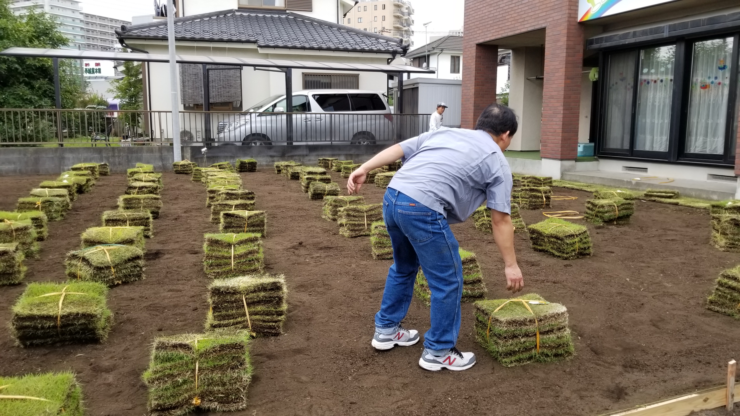 芝貼り作業まで順調に進みましたが、まだまだ仕事は残っています。