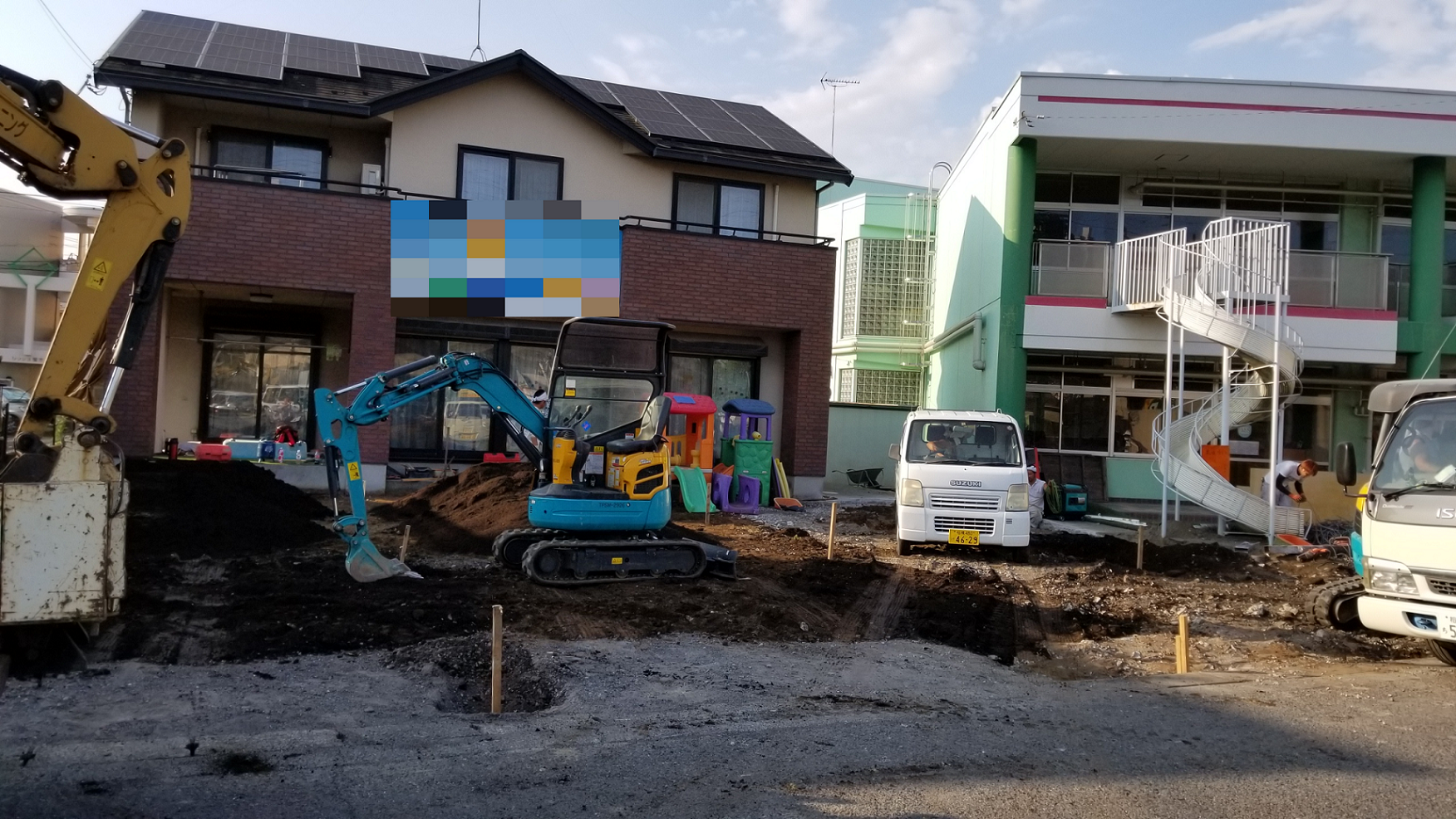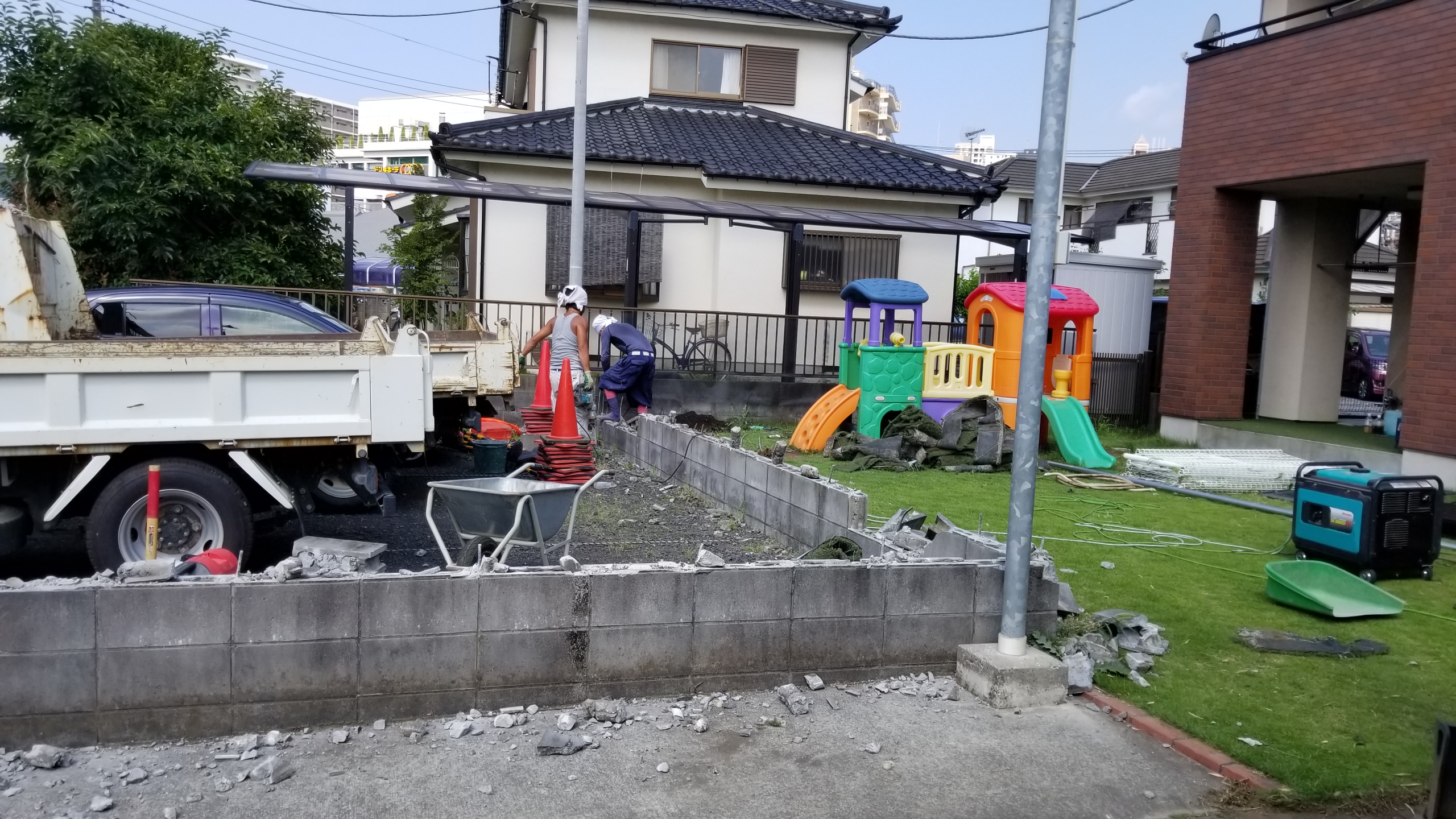 工事の内容は駐車スペースとなっている部分も園庭として使えるようにブロック塀を壊し道路境界部分に新しくフェンスを設けます。