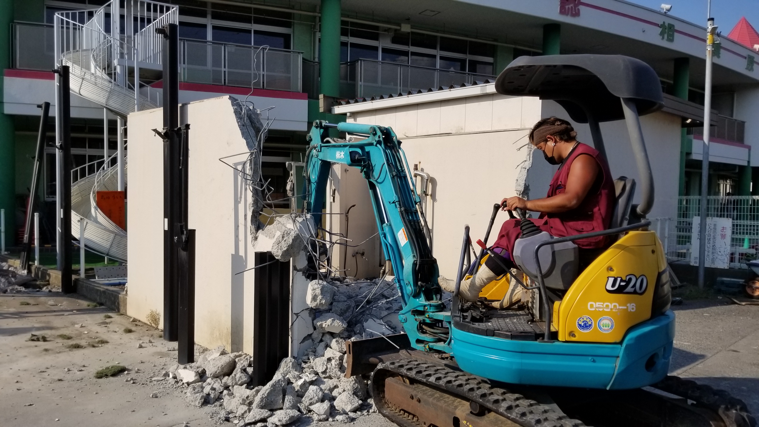 とにかく作業量が多かったので、手作業班と重機の班に二手に分け、あっという間に構造物がなくなっていきました。