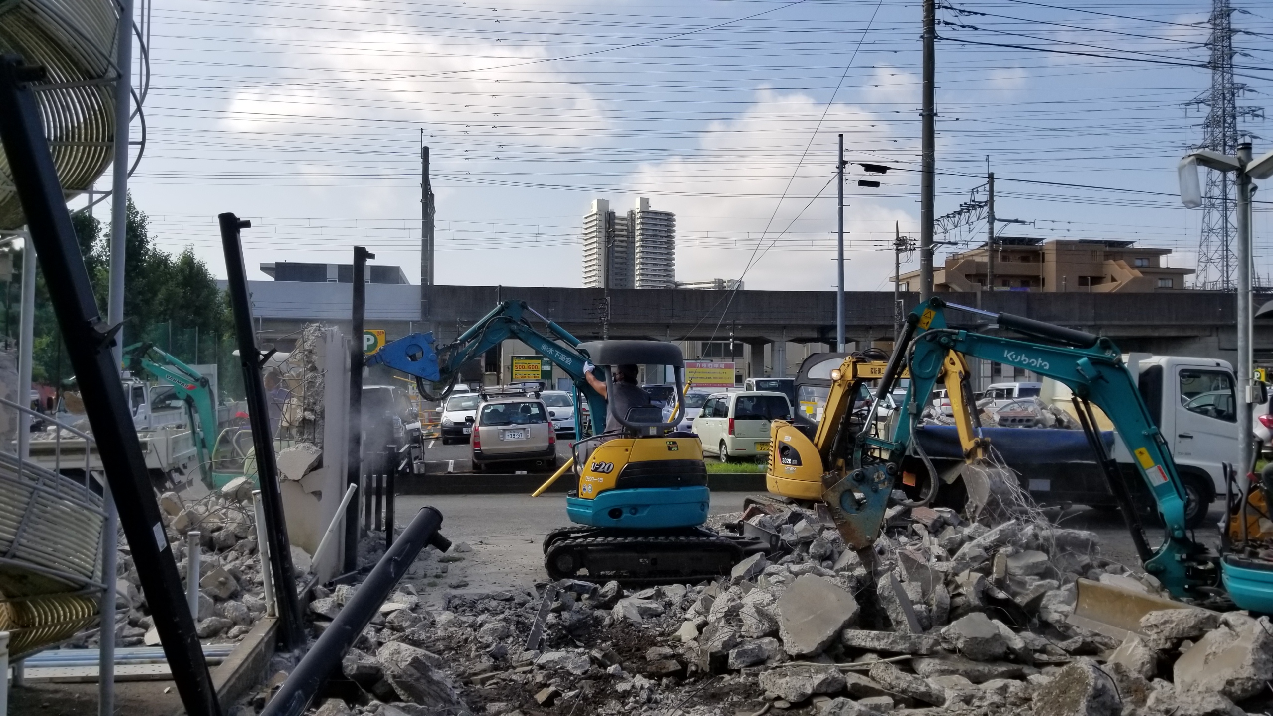 重機もブレーカと呼ぶ「ダダダッ」っと叩き壊すタイプに、殻を集めてダンプカーに積み込むタイプをフル活動(^^♪