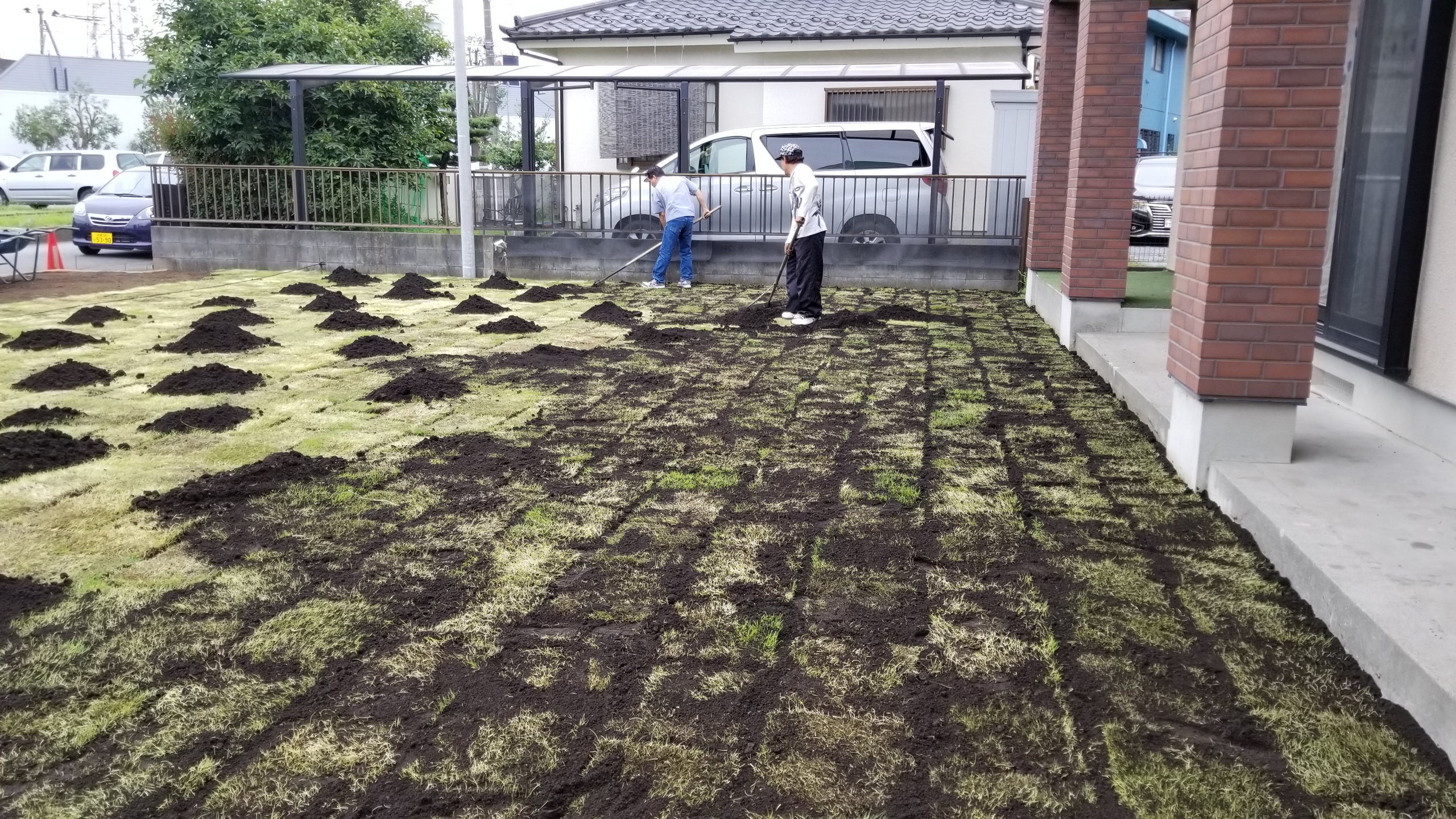 この時期の芝張りは水の管理が大切で乾燥しないよう気を付けなければなりません(;^ω^)