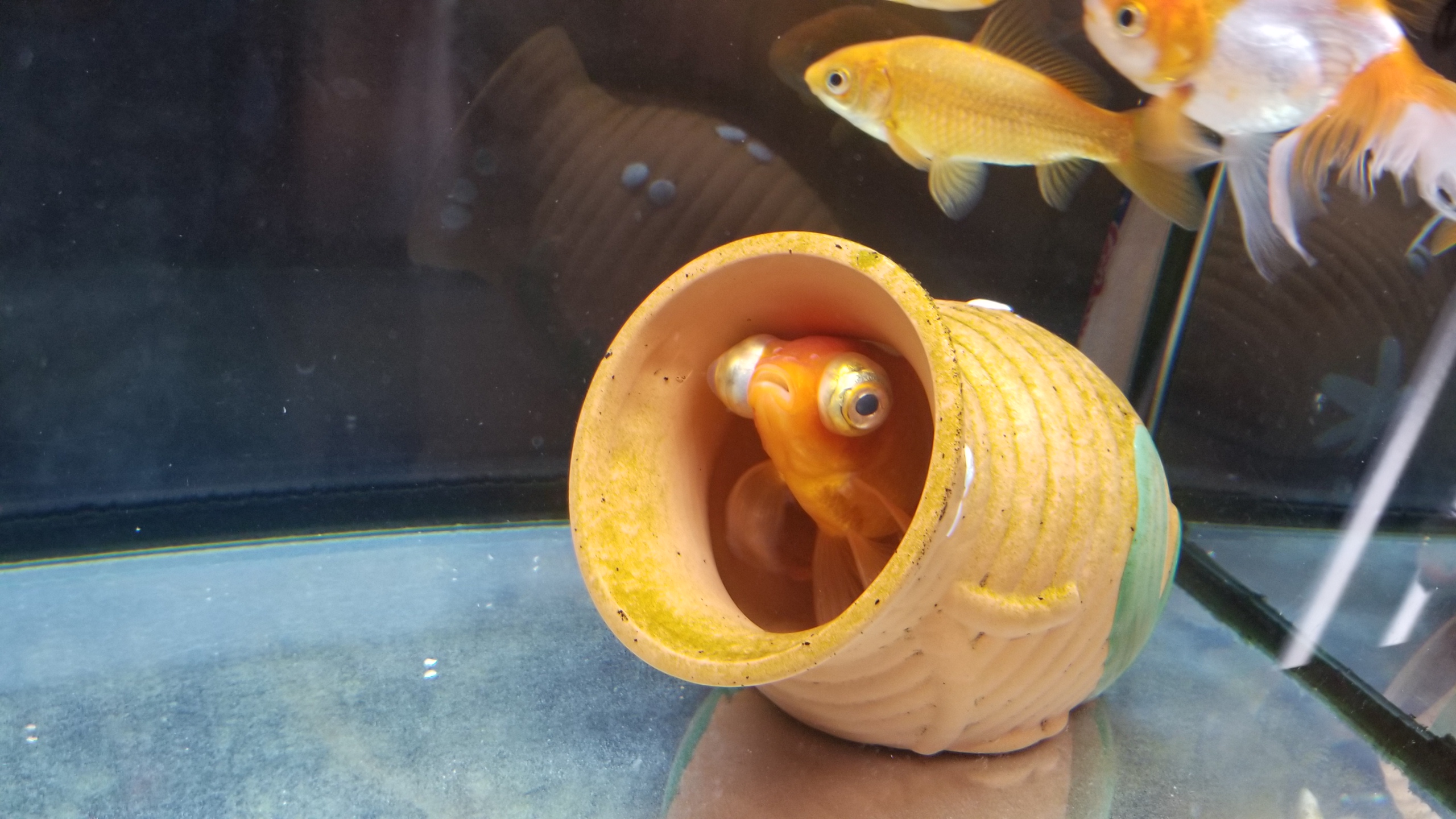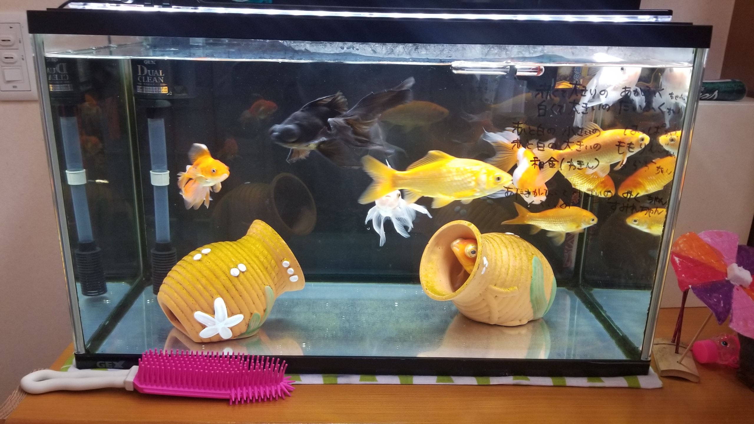 のんびり泳ぐ金魚に癒された気持ちになりました。