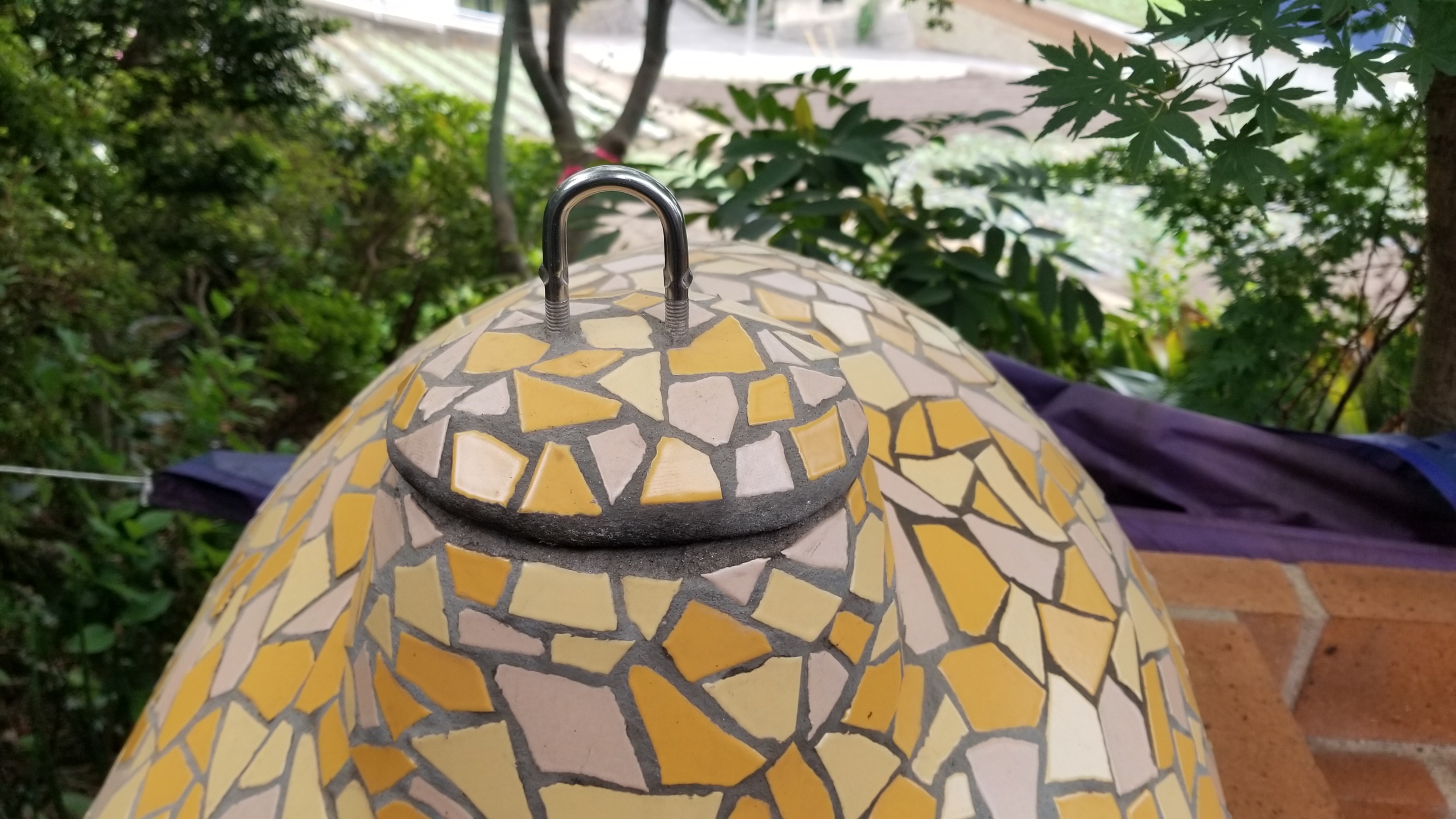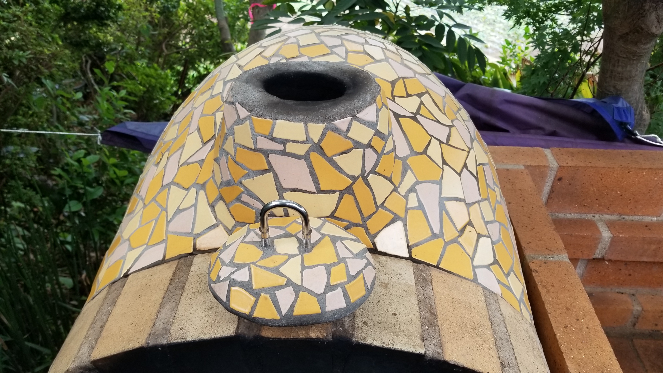 耐熱セメントの躯体には乱形に砕いたタイルで化粧されてます。