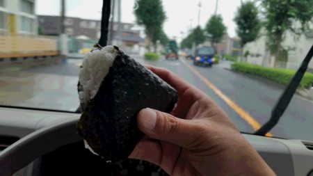 朝、現場に向かう途中普通の住宅に『おにぎり』の旗が風邪でなびいていて当時の親方が、目の前に車を停めてくれて買いに行ったものです。