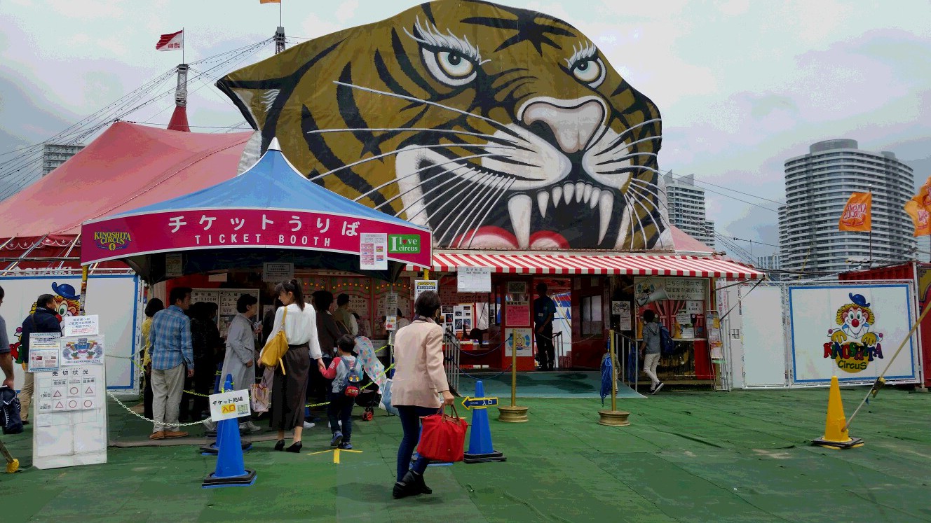 駅についても人はまばらで賑わってる雰囲気もありません、休日でもない普段の日、サーカス見に来る人いるの?客席おれたちだけだったら・・なんて不安がありましたが、会場に着くとそんな心配もなんのその長い行列が出来ていて安心しました(^^)