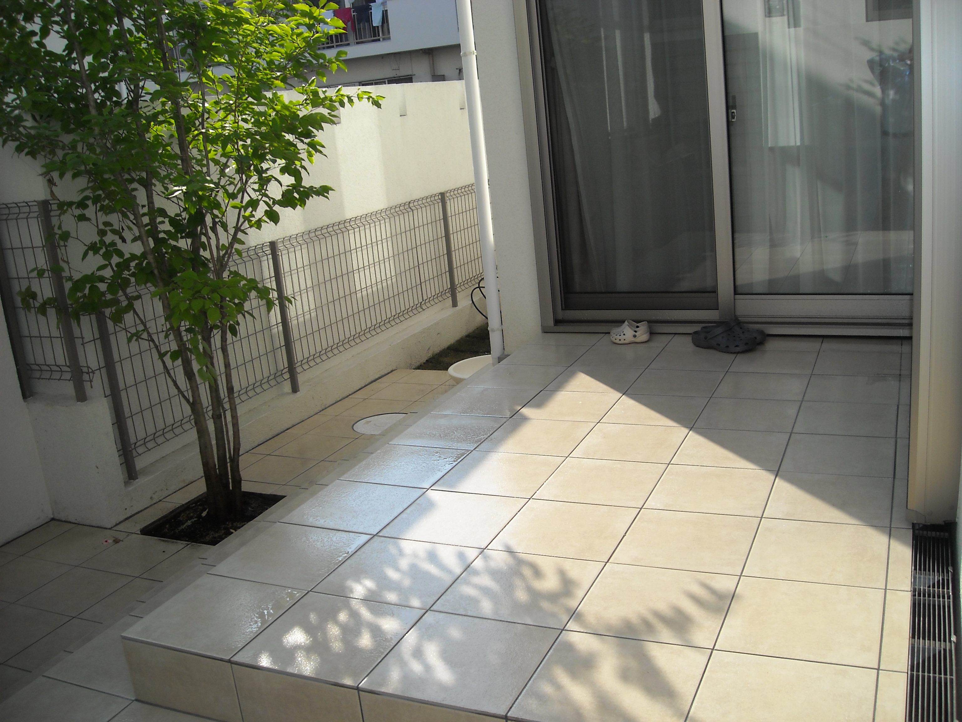 この当時はテラスの経験も少なく、水勾配やこのような収まりを提案するには対応できる商品を探したり、使うのも初めてだったりと何かと苦労したものです。