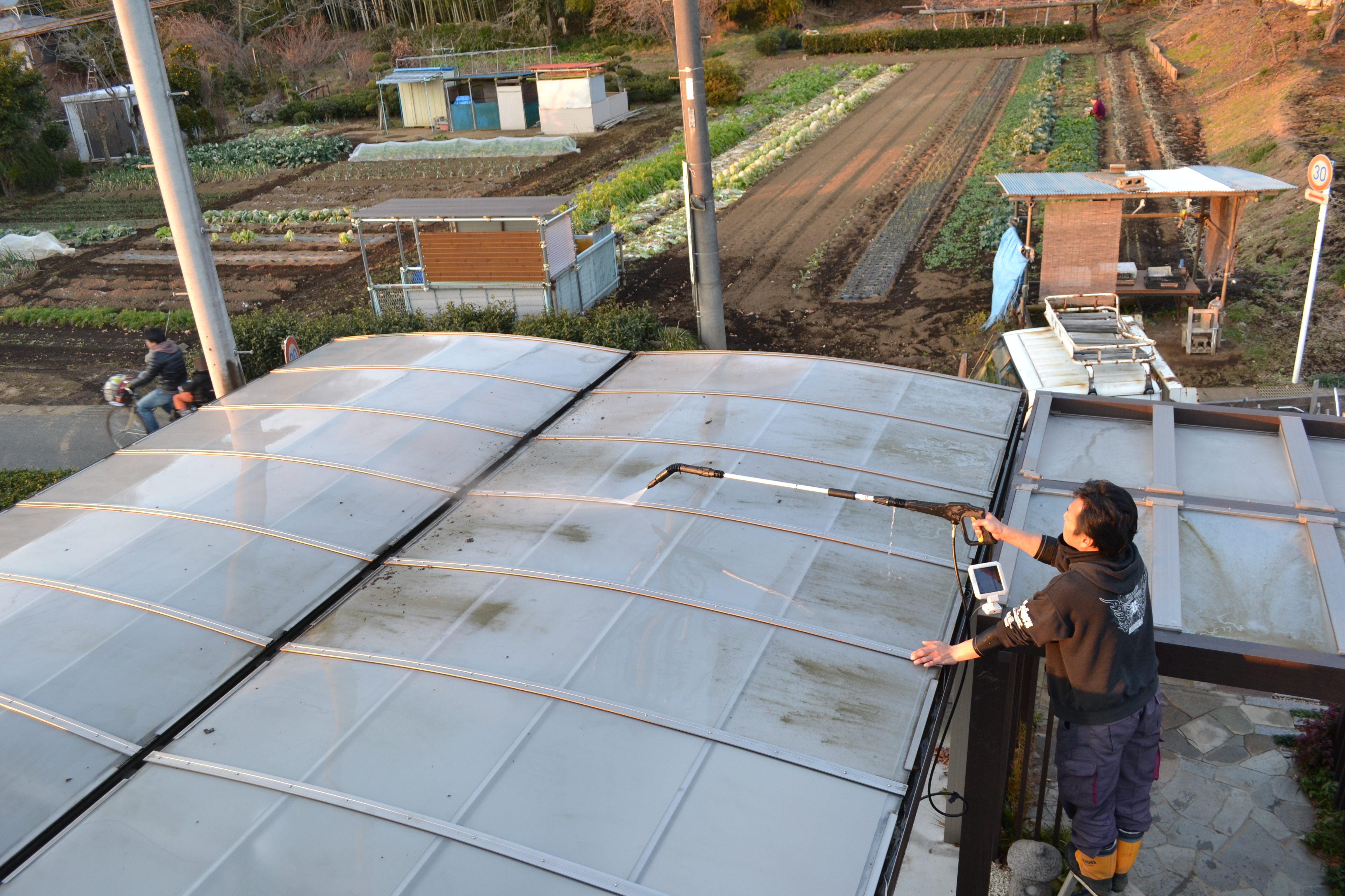 カーポート・ブロック・タイルの清掃に・・