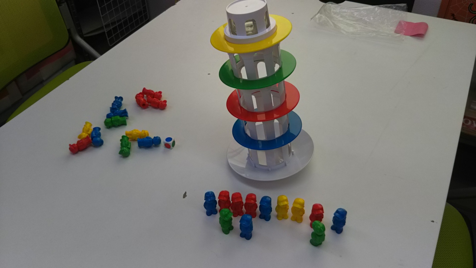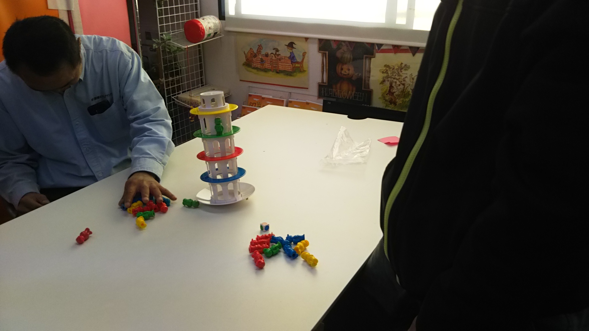 ゆらゆらと揺れる台に人形を乗せ、崩れたら負けなゲームを競いました(笑)