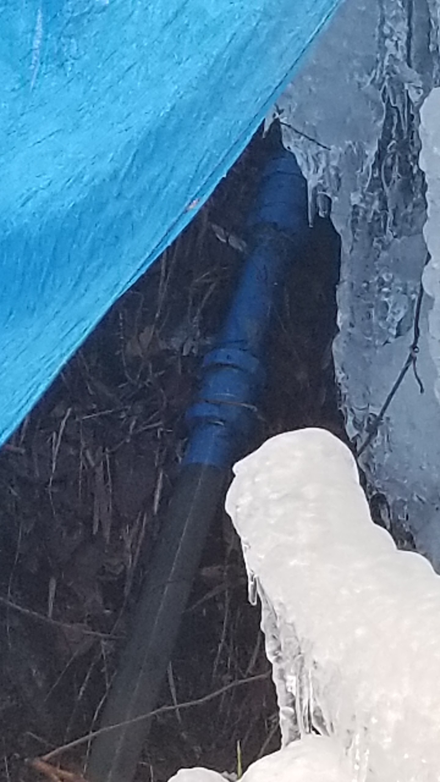 寒させいでの剥き出し水道管が凍結して破裂、大変なことになっていました。