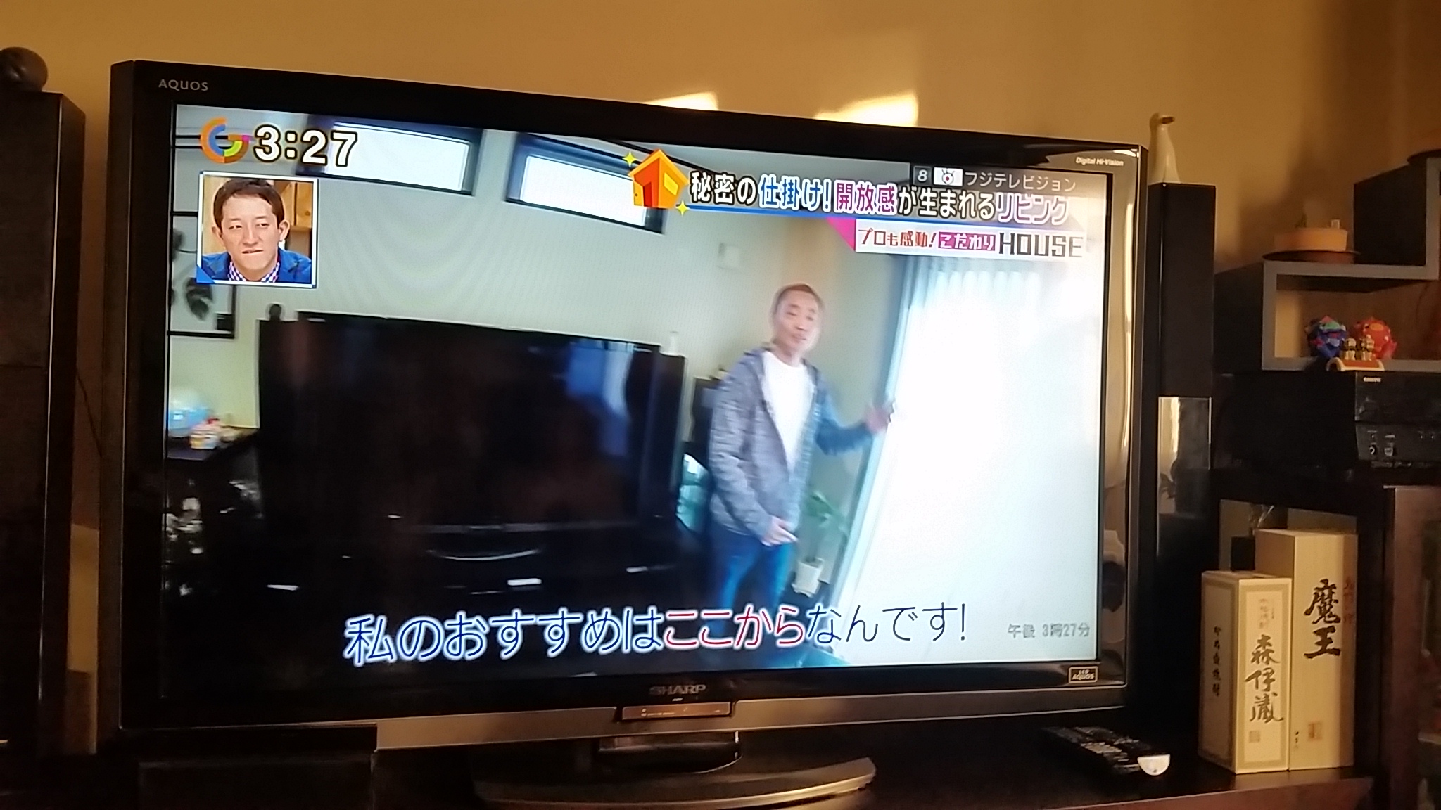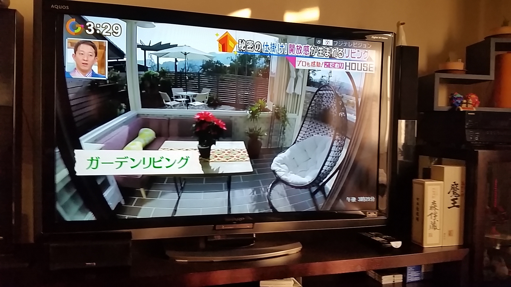 他で撮影した素晴らしいリビングルームが紹介される中、ガーデンリビング(ガーデンルーム)で大丈夫なのだろうかと心配しましたが、三件の紹介の中でよかったと思う物件を出演者が選ぶんです、・・・なんと弊社を選んでいただきました。