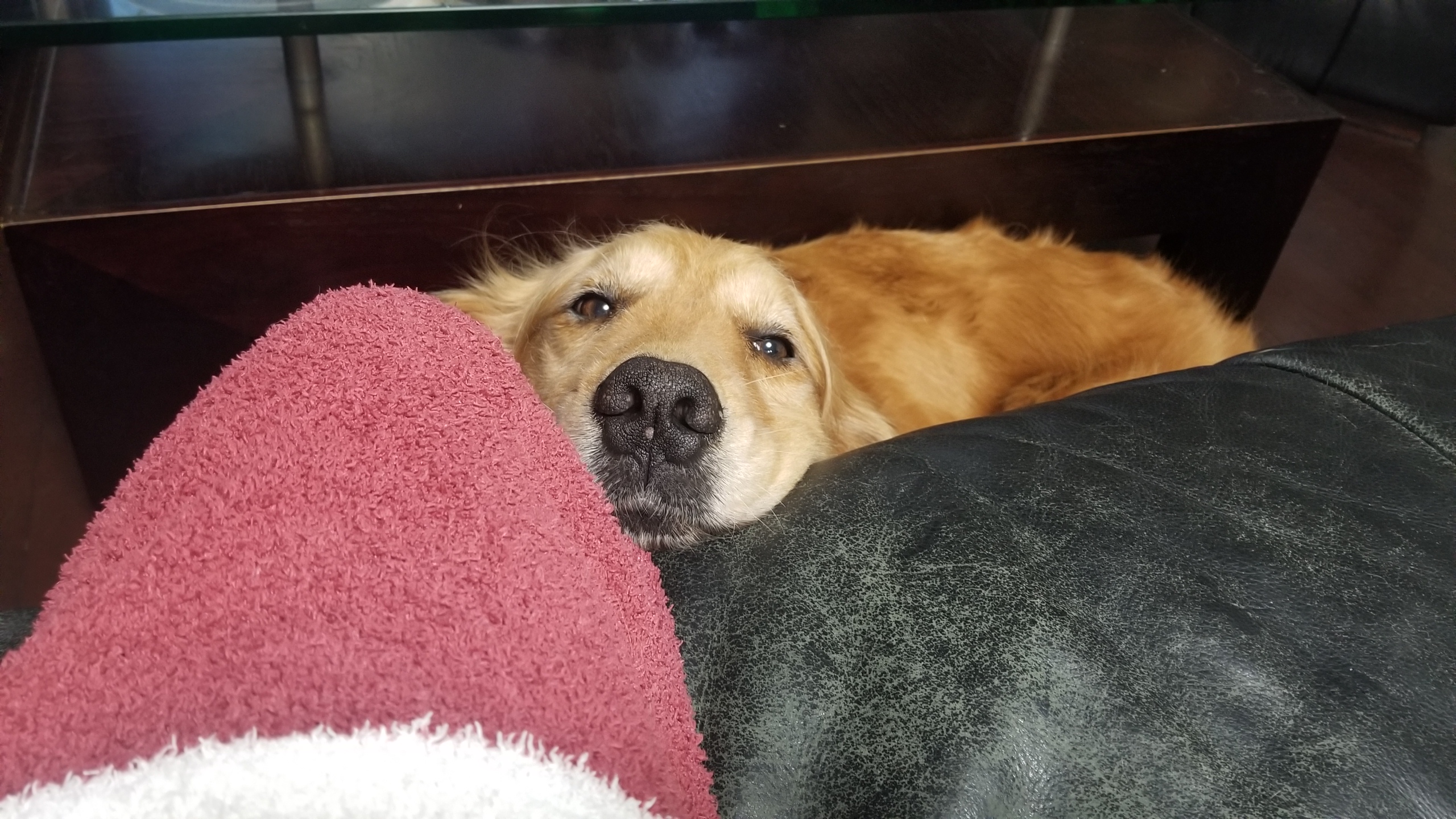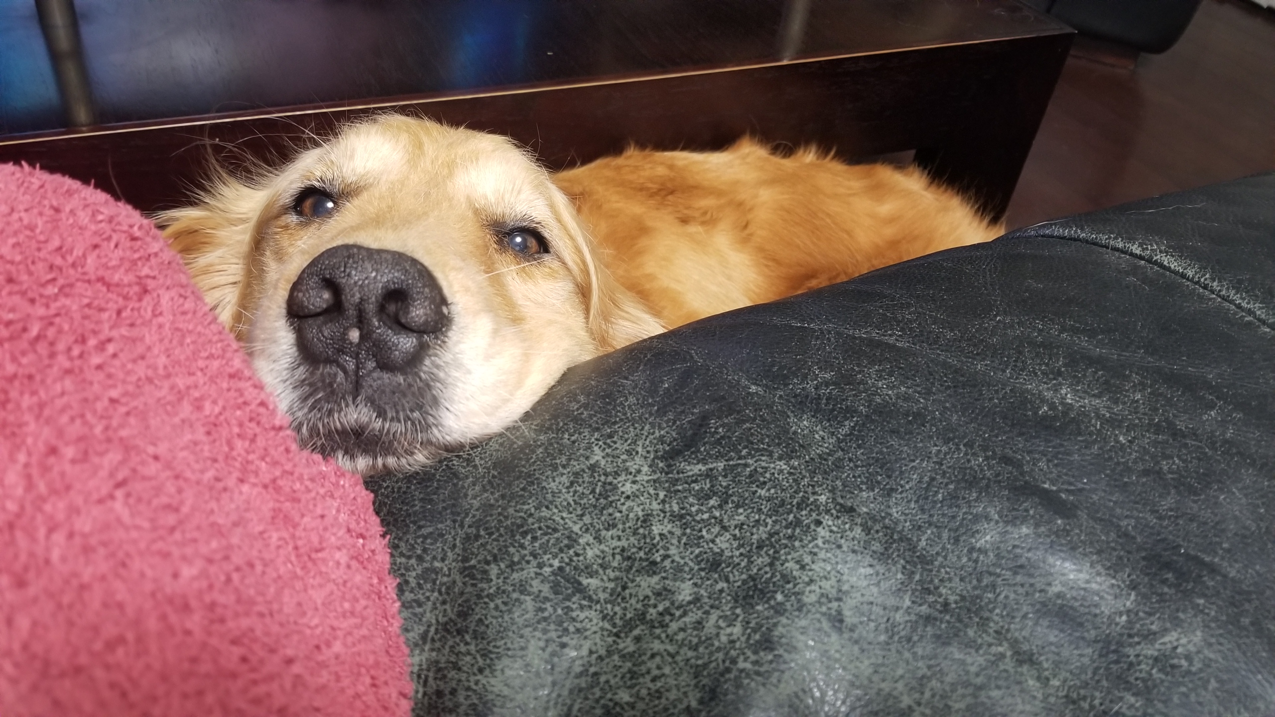 寂しげな顔も可愛いゴールデンレトリーバーの女の子ですが
