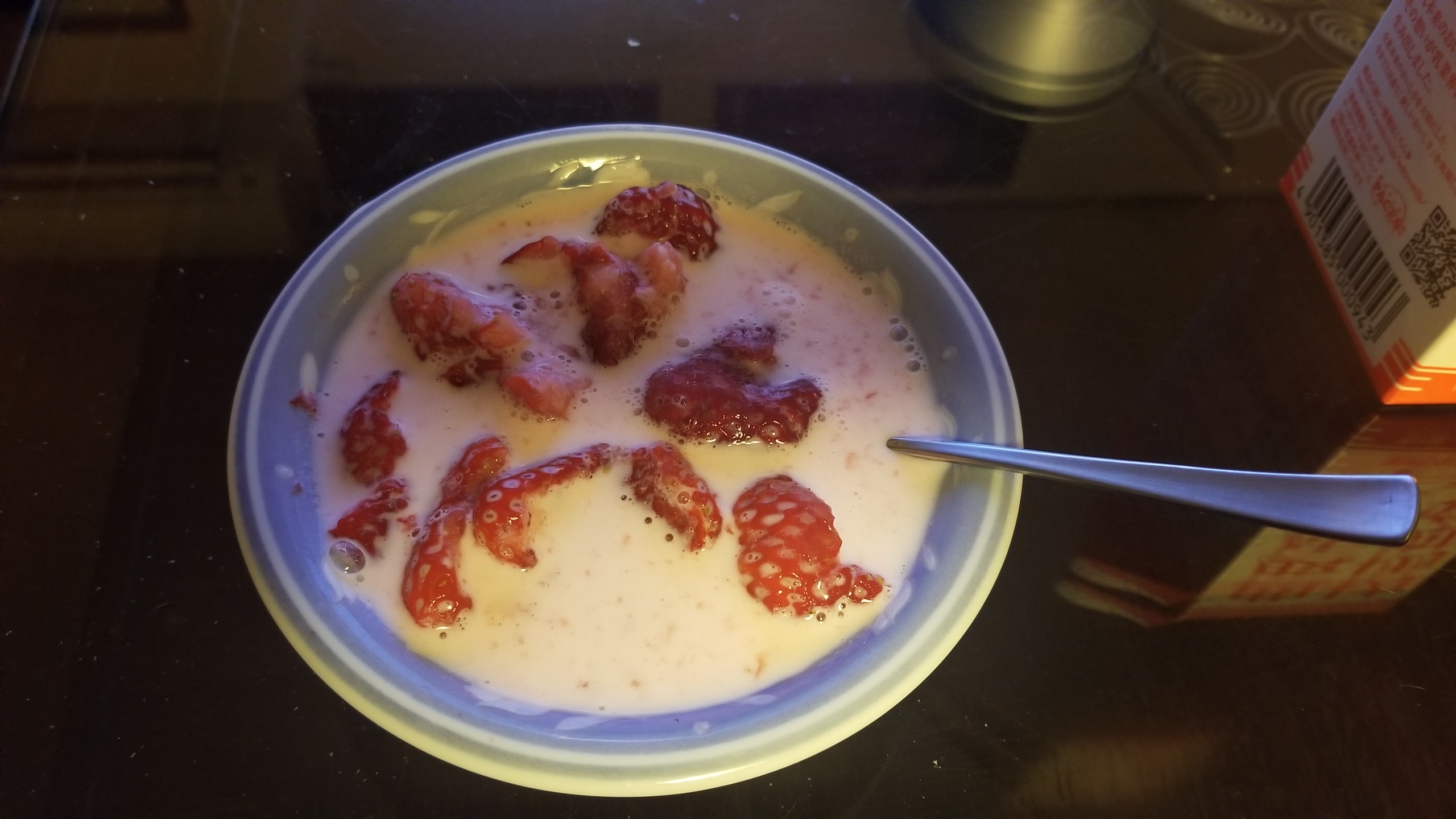 正解は解りませんが妙に食べたくなり、奥さんに苺と牛乳を買ってきてもらい久しぶりの味を楽しみました~♡