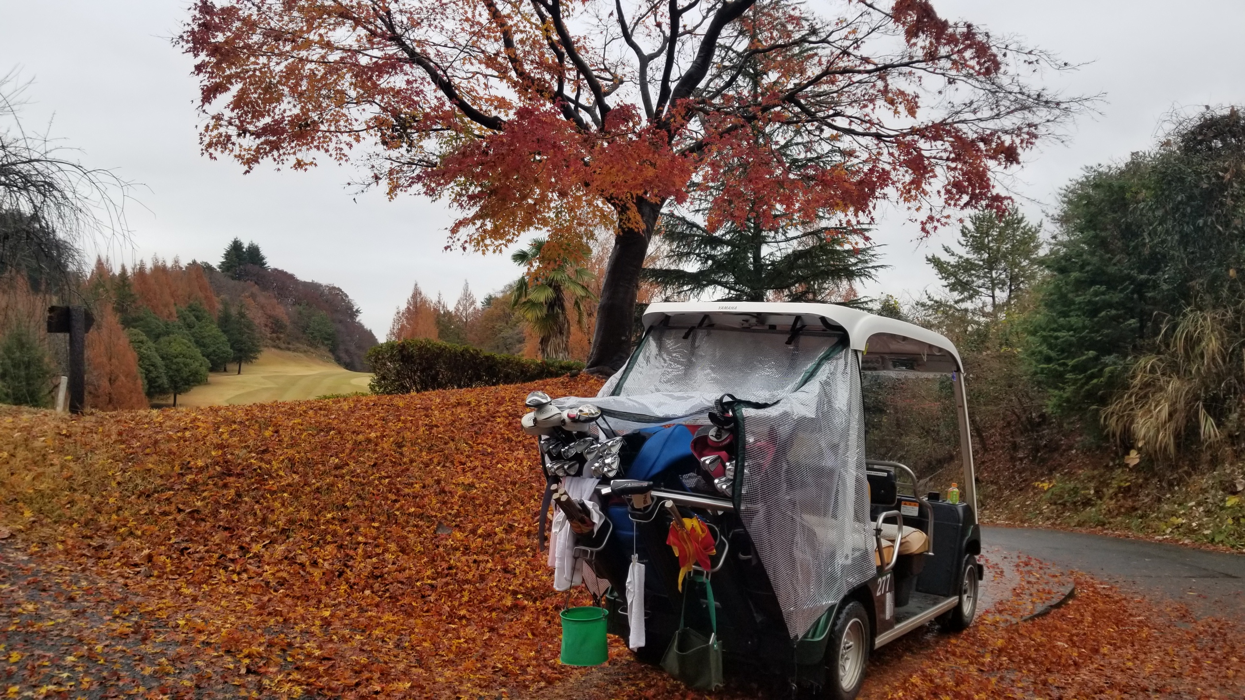 しかしこの日は紅葉した落ち葉がラフ一面に赤、オレンジ、黄色と染めてました。