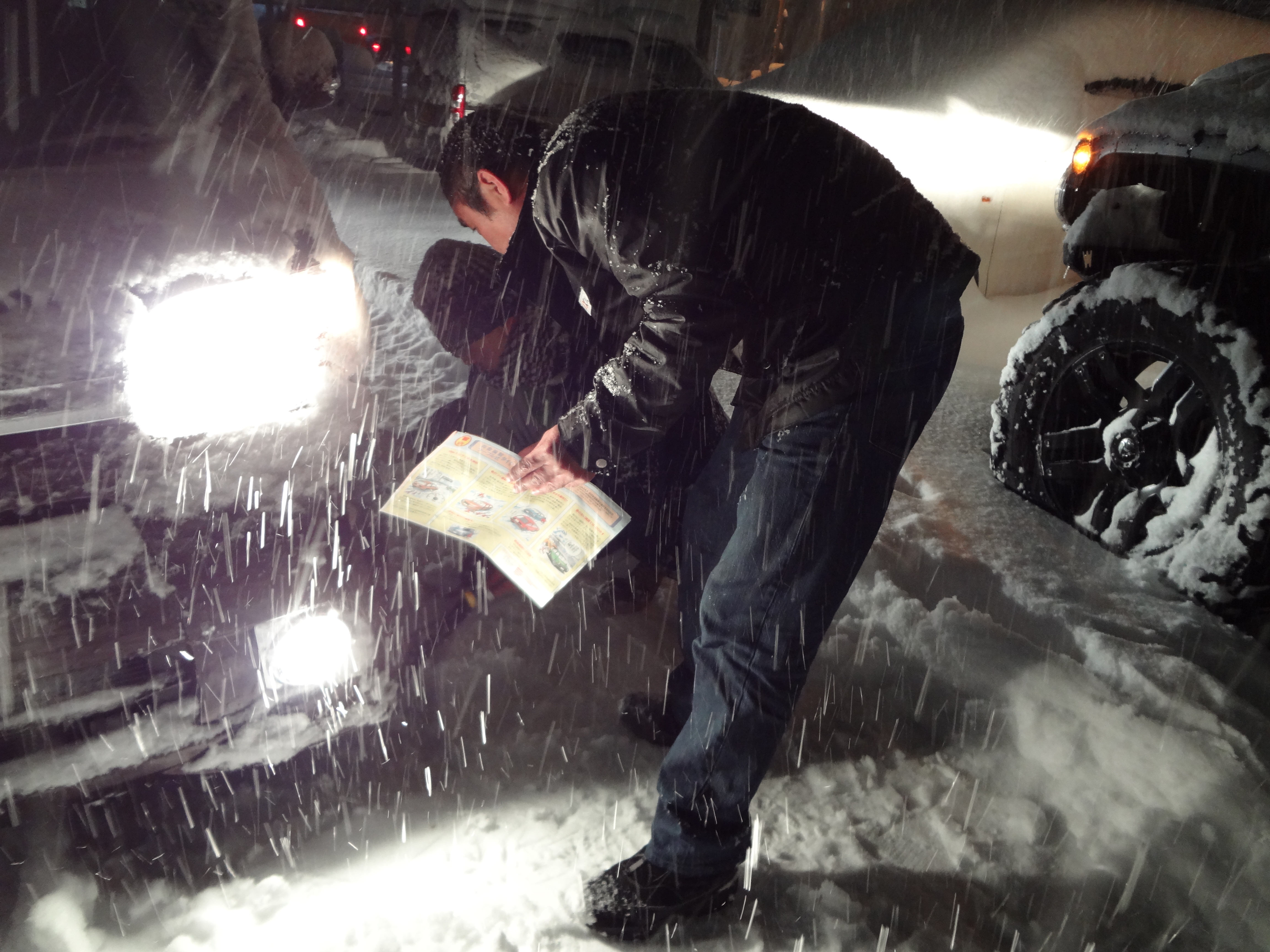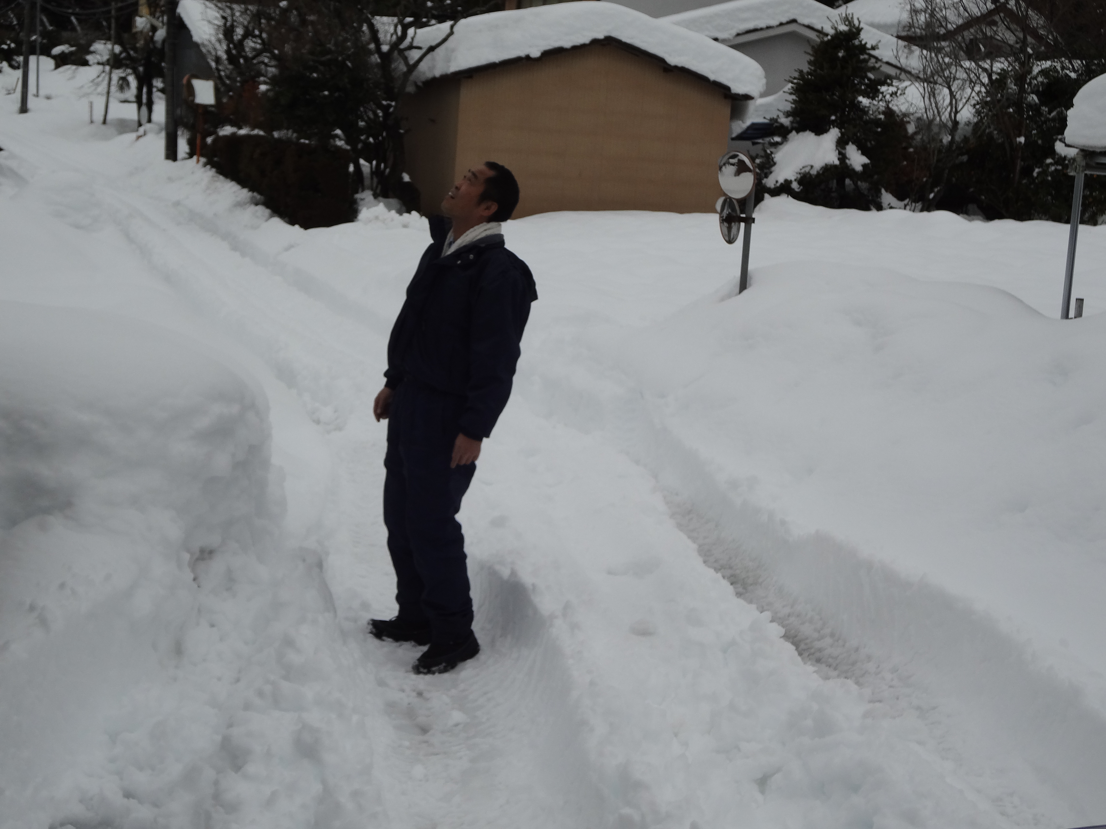 津々と降り続けた雪、昼間に積もった雪をかき分け車を出そうとする従業員、寒い中みんなでチェーンを装着したのを思い出します。