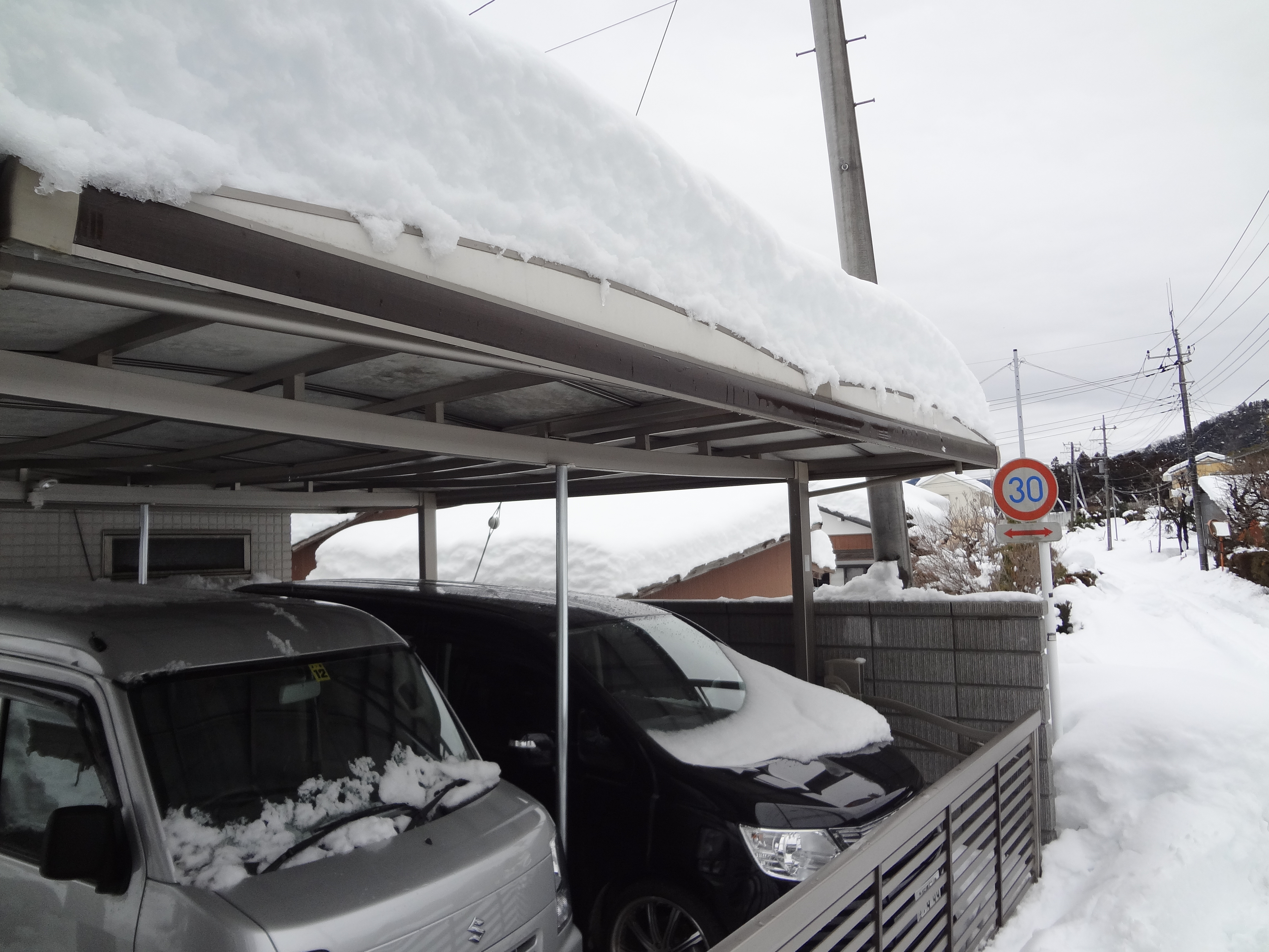 なんとか潰れないで済んだものの、この梁の曲がり具合にはカーポートの下に入るのを躊躇しました。