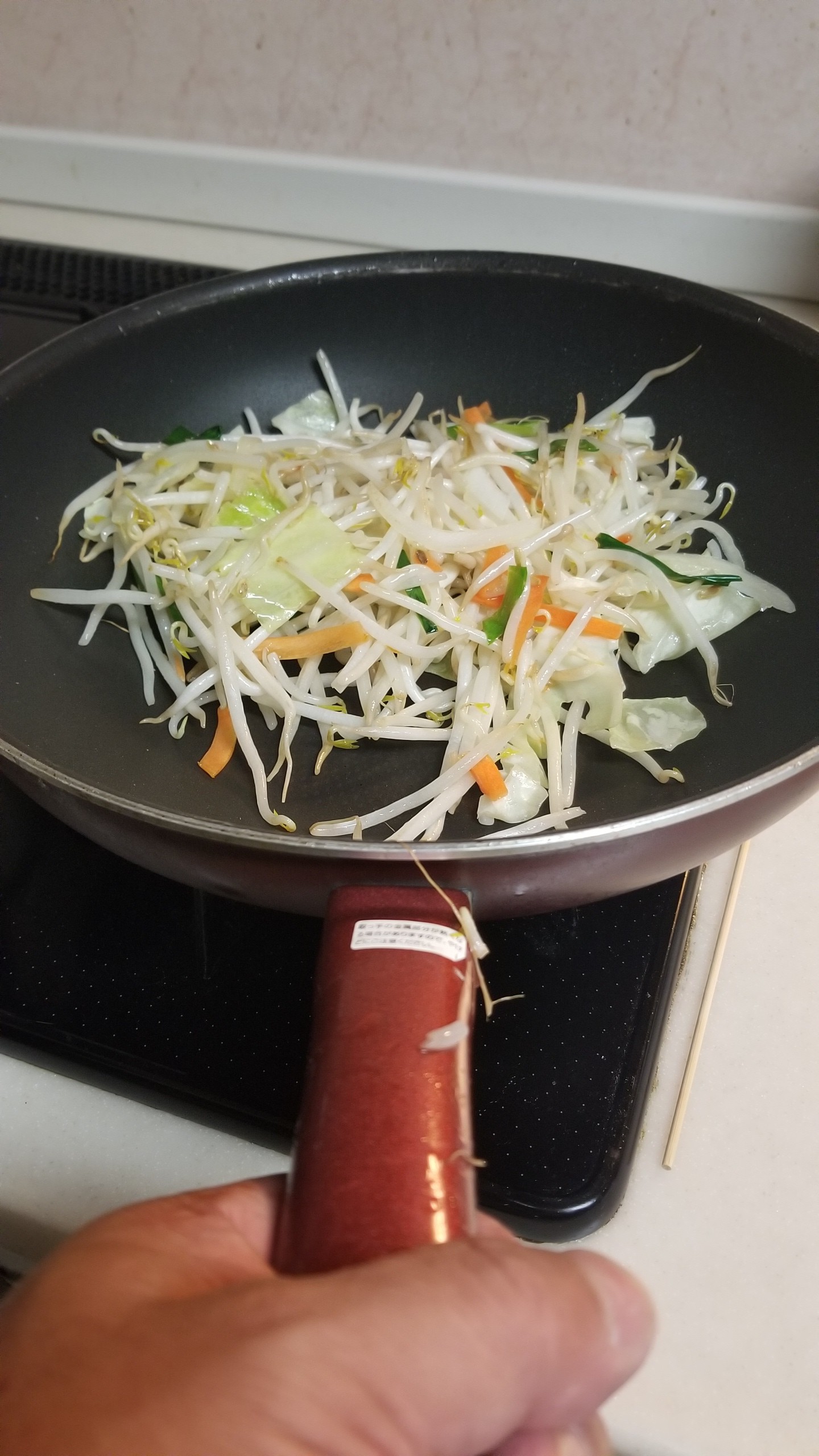 調理時間は3分少々!でもキッチンには野菜や調味料が飛び散り