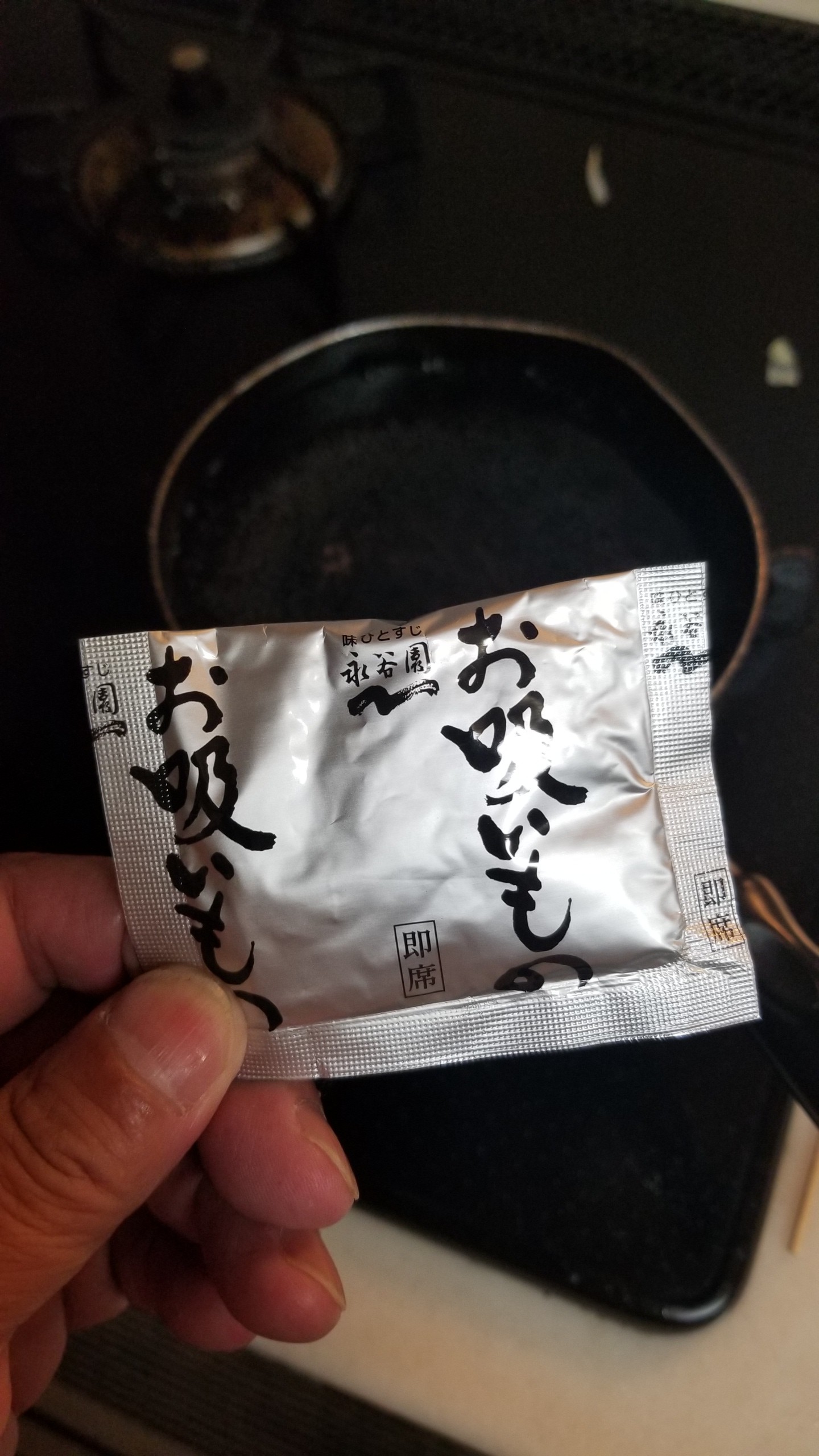 一人用の小さなフライパンに湯を沸かし、即席スープを入れて・・