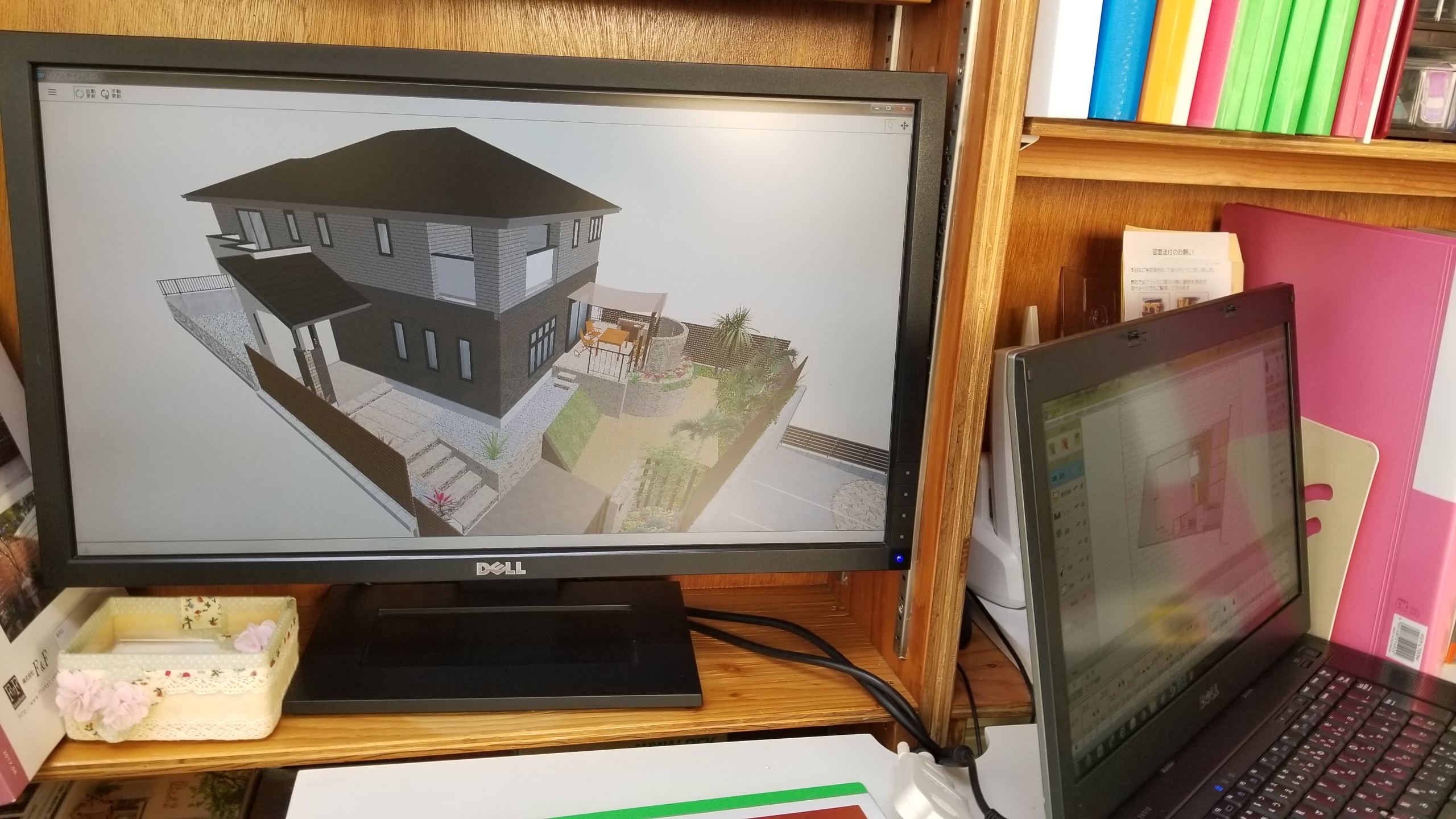弊社では外構工事の打ち合わせにパソコンの3Dキャドを用いて、よりイメージしやすく