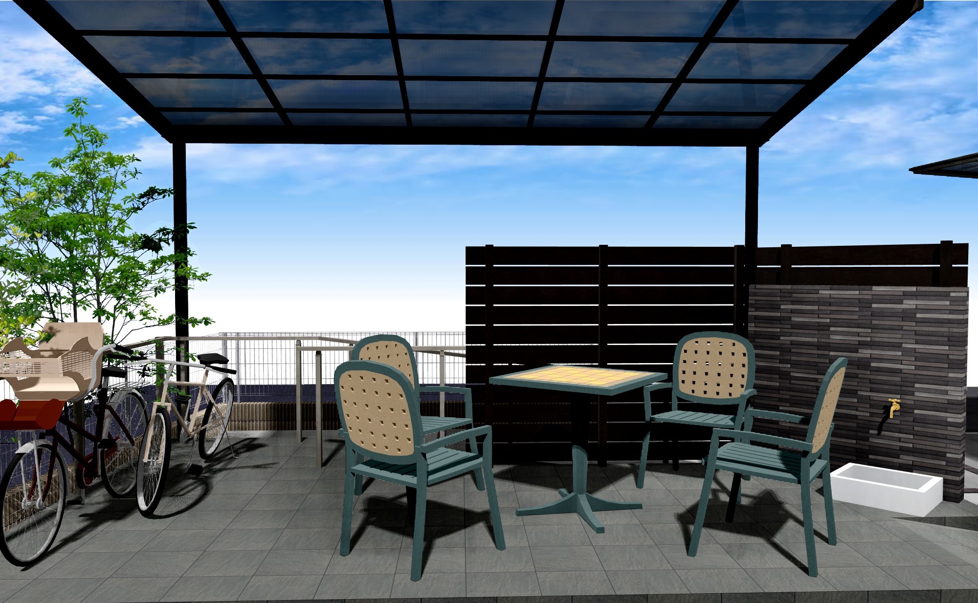 テラススペースの目線も目隠しフェンスをプラスしてシャットアウトしています。