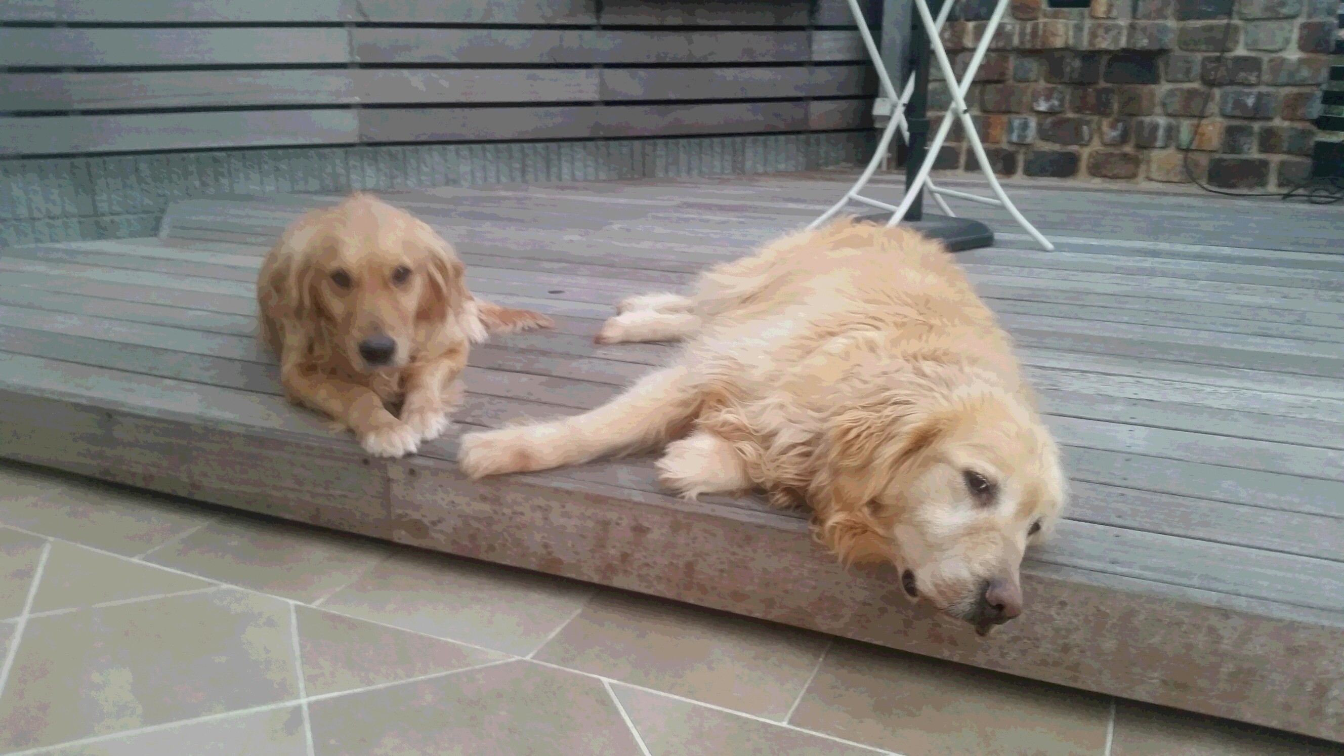 毎朝庭に出て、鉢植えに水やり、わんこと戯れていると・・・