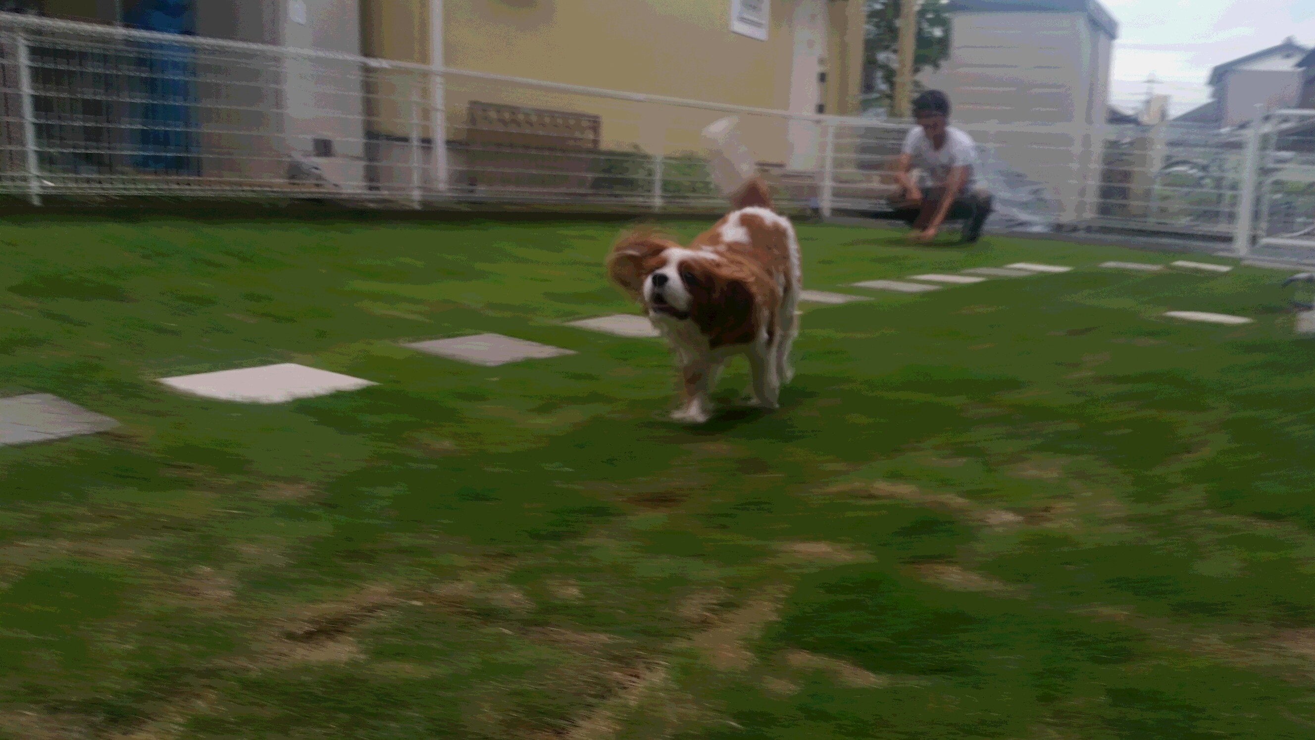 子供たちもワンコも元気よく走り回り、それを見ているF様ご夫婦・・・