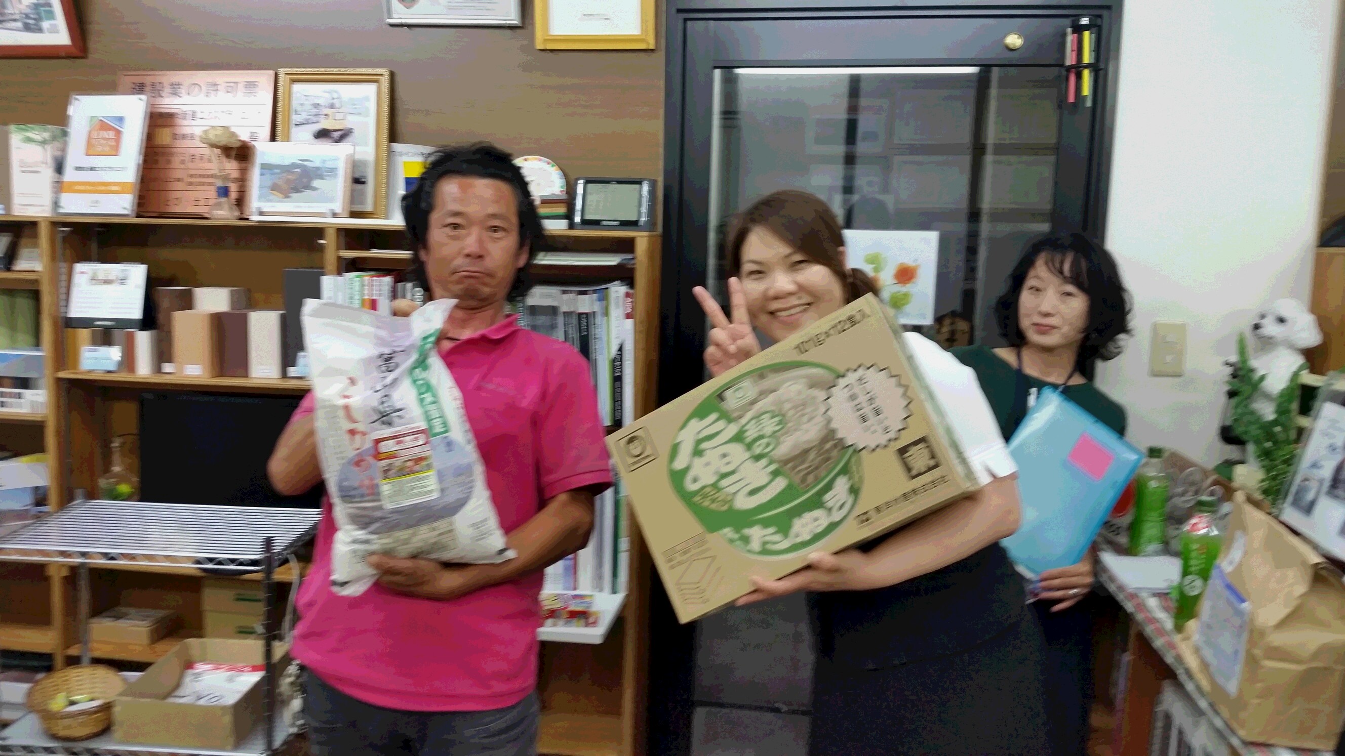 今回景品をゲットしたのは事務の鹿野と職人の深谷!景品はお米5Kとカップめん一箱でした( ^^) _U~~
