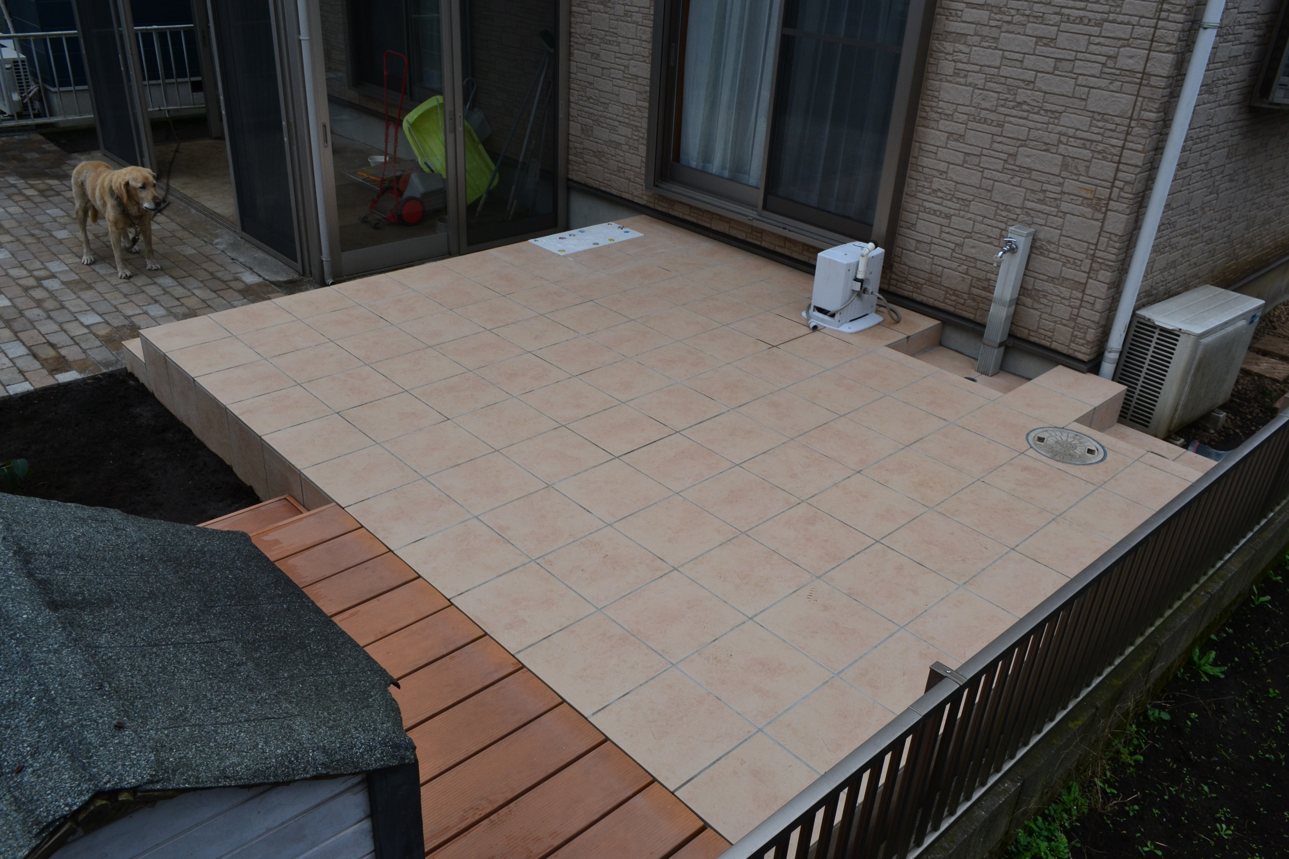 タイルテラスにしたことでいろんなことが出来るようになったと喜んで頂きました。