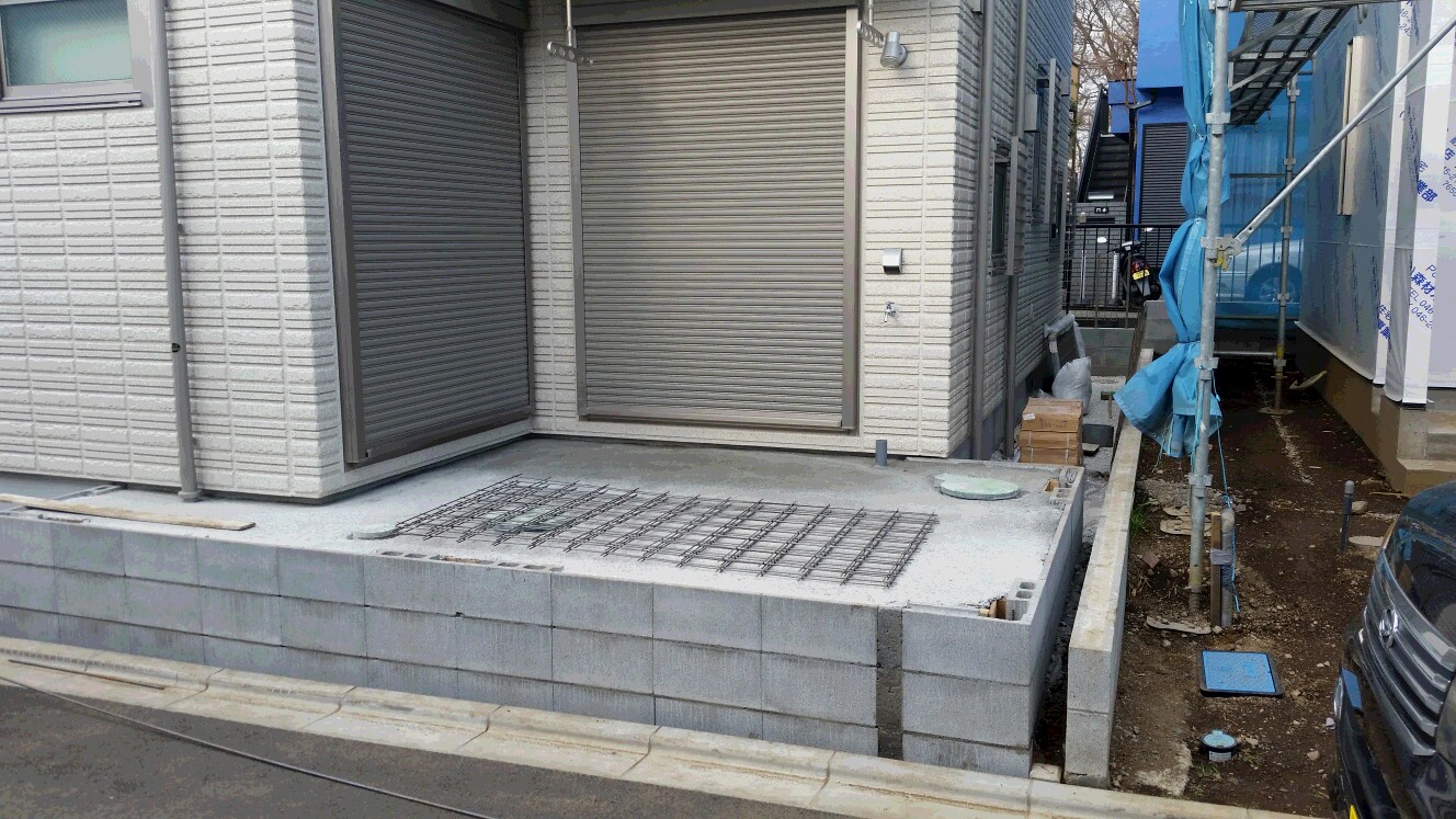 日々作業を進め門袖とタイルテラスの下地が完成しました。