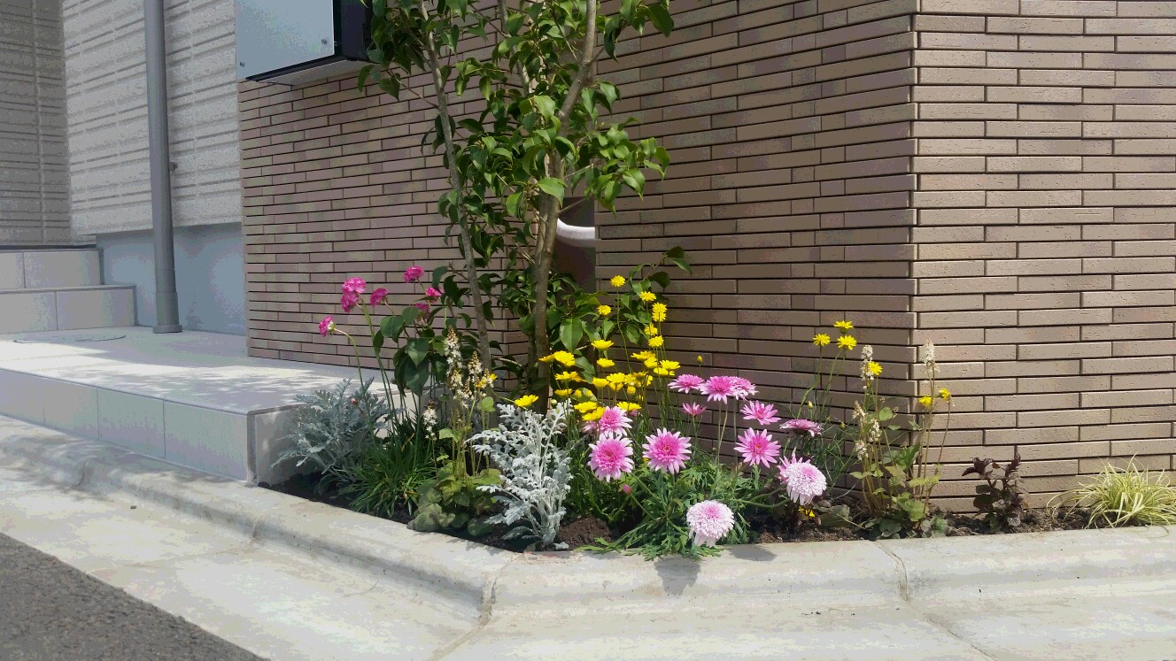 今の季節の工事完成引渡しは、植物も鮮やかで弊社施工の外構を一段と綺麗に見せてくれます。