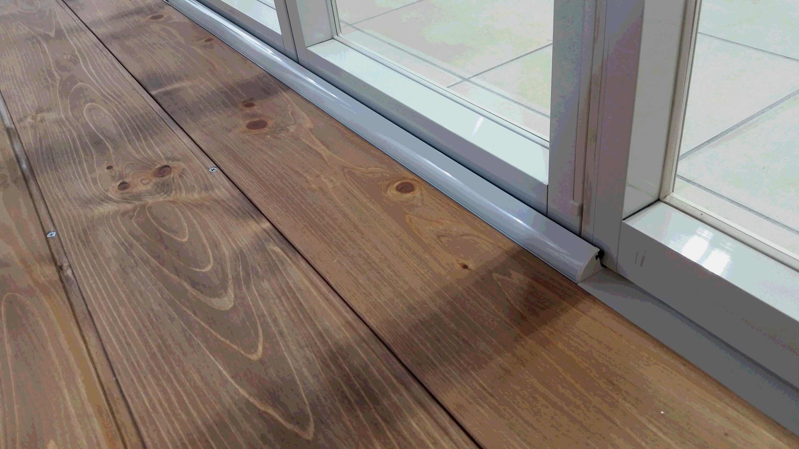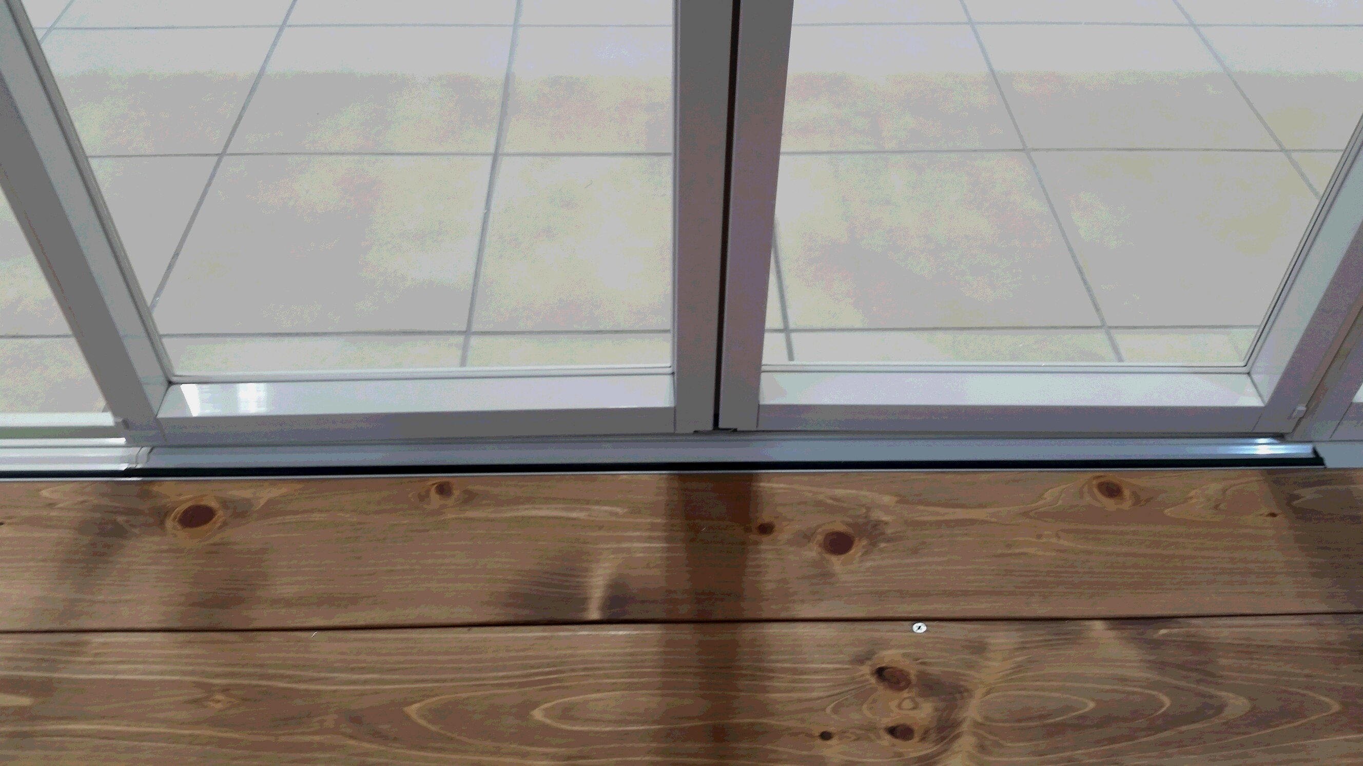 戸をオープンにした時はフラットに・・ルームの外床と内床には3センチほどの段差があります。