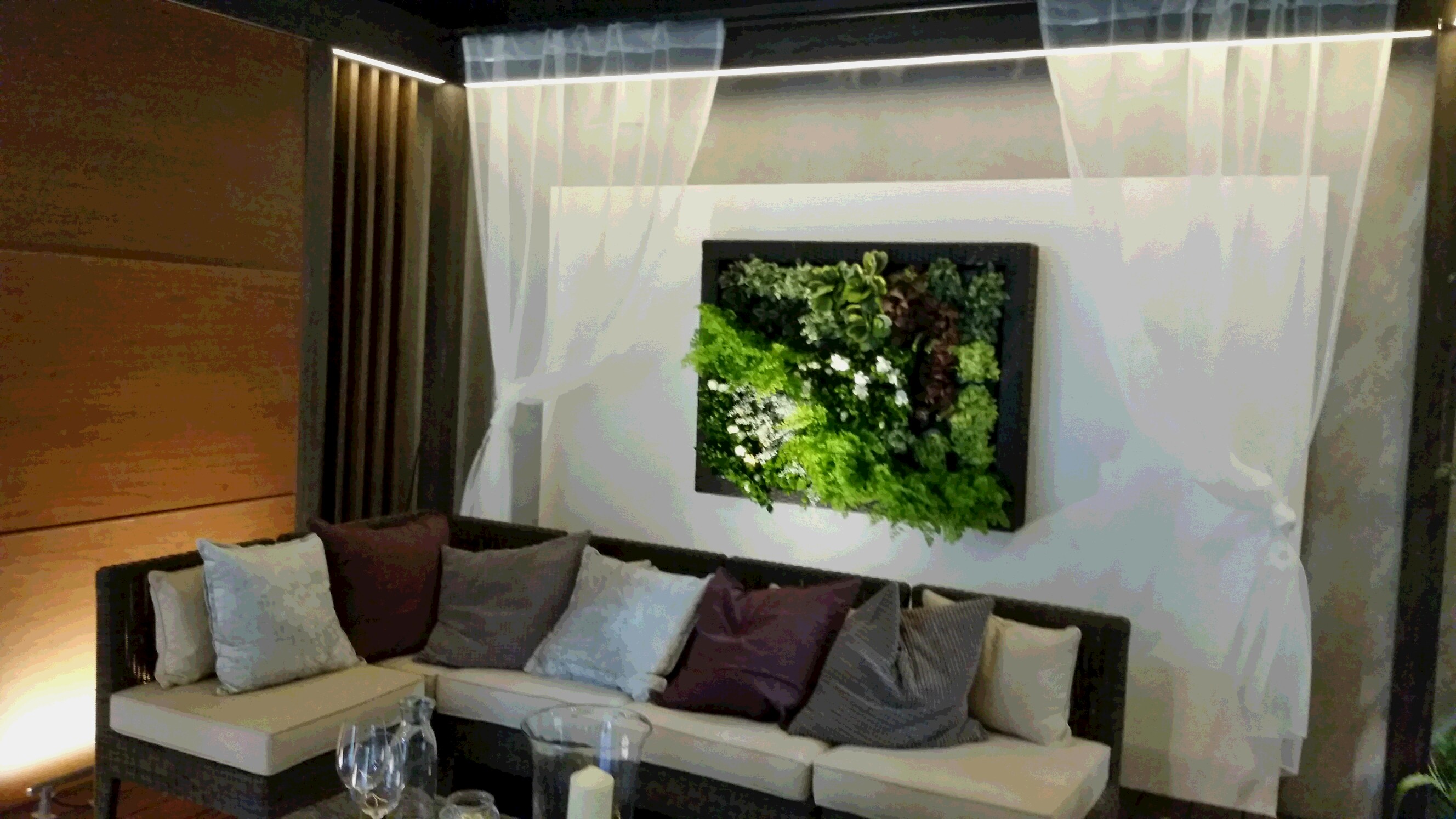 上のパーゴラの周りにボードを組み合わせ床にはウッドデッキ、後はレースのカーテンとラタンのソファーを用意すれば・・・