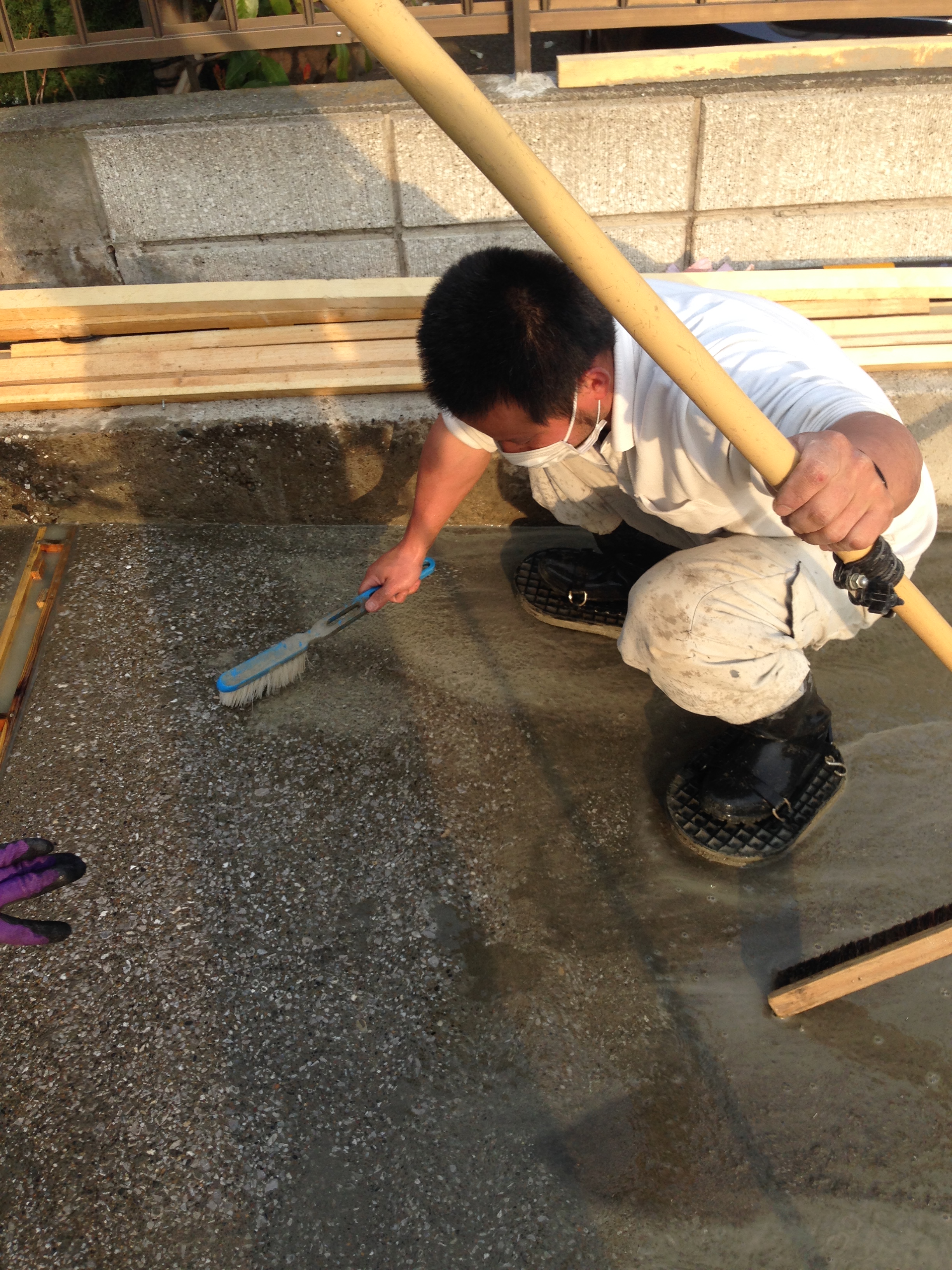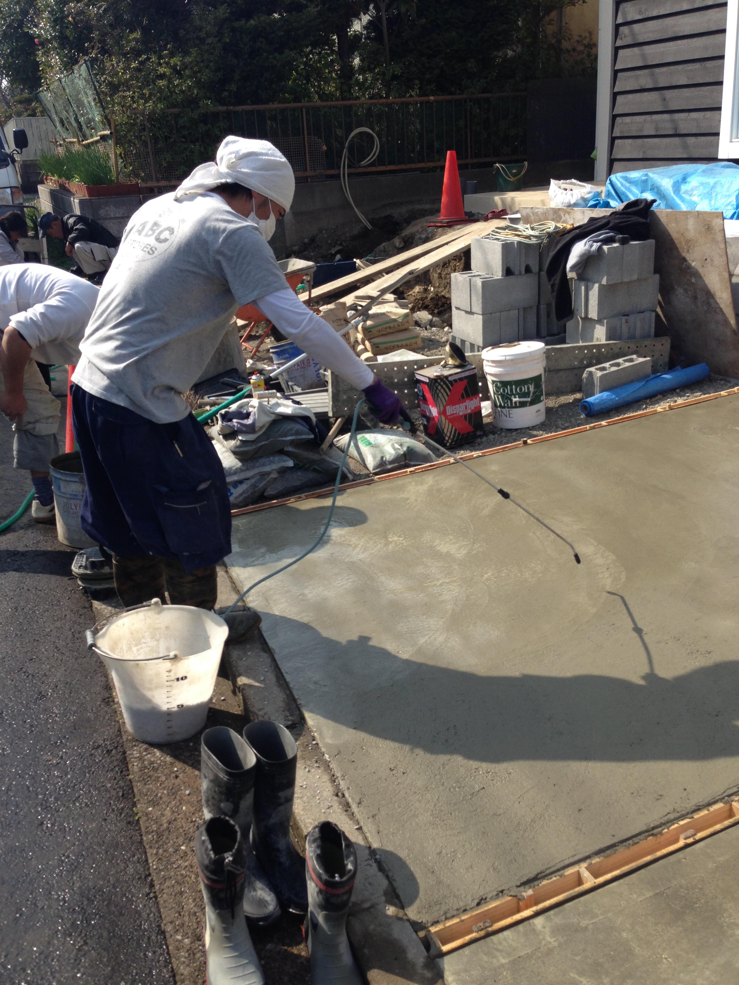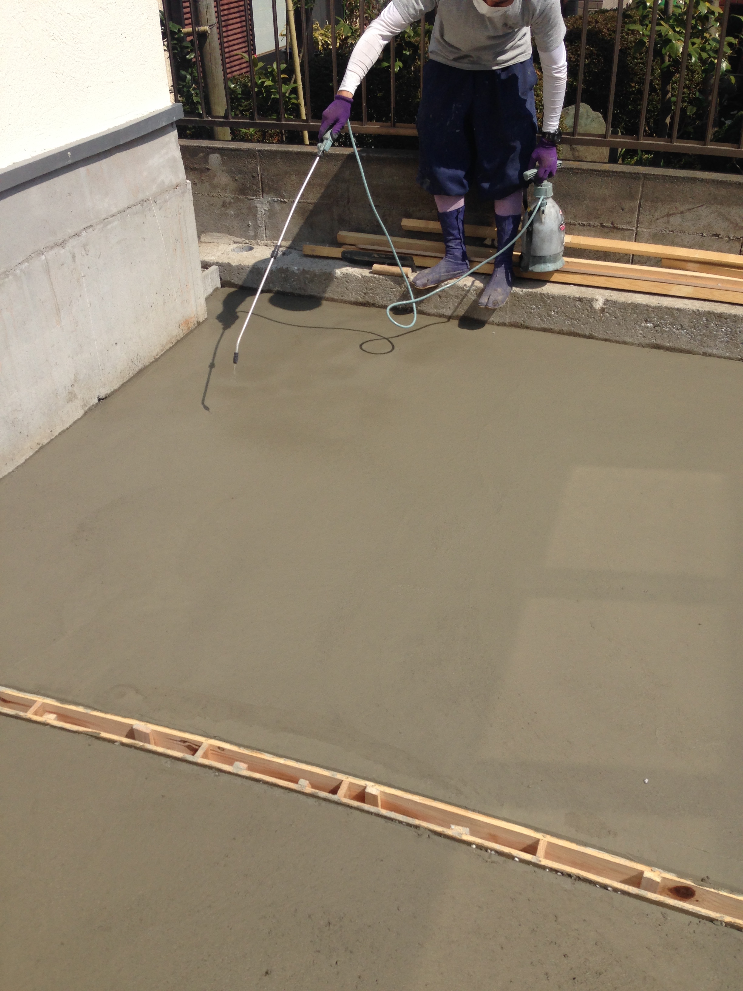 コンクリート打設まではいつも通りの施工方法ですが少し硬化が始まってから本来であればこの時点で硬化遅延材