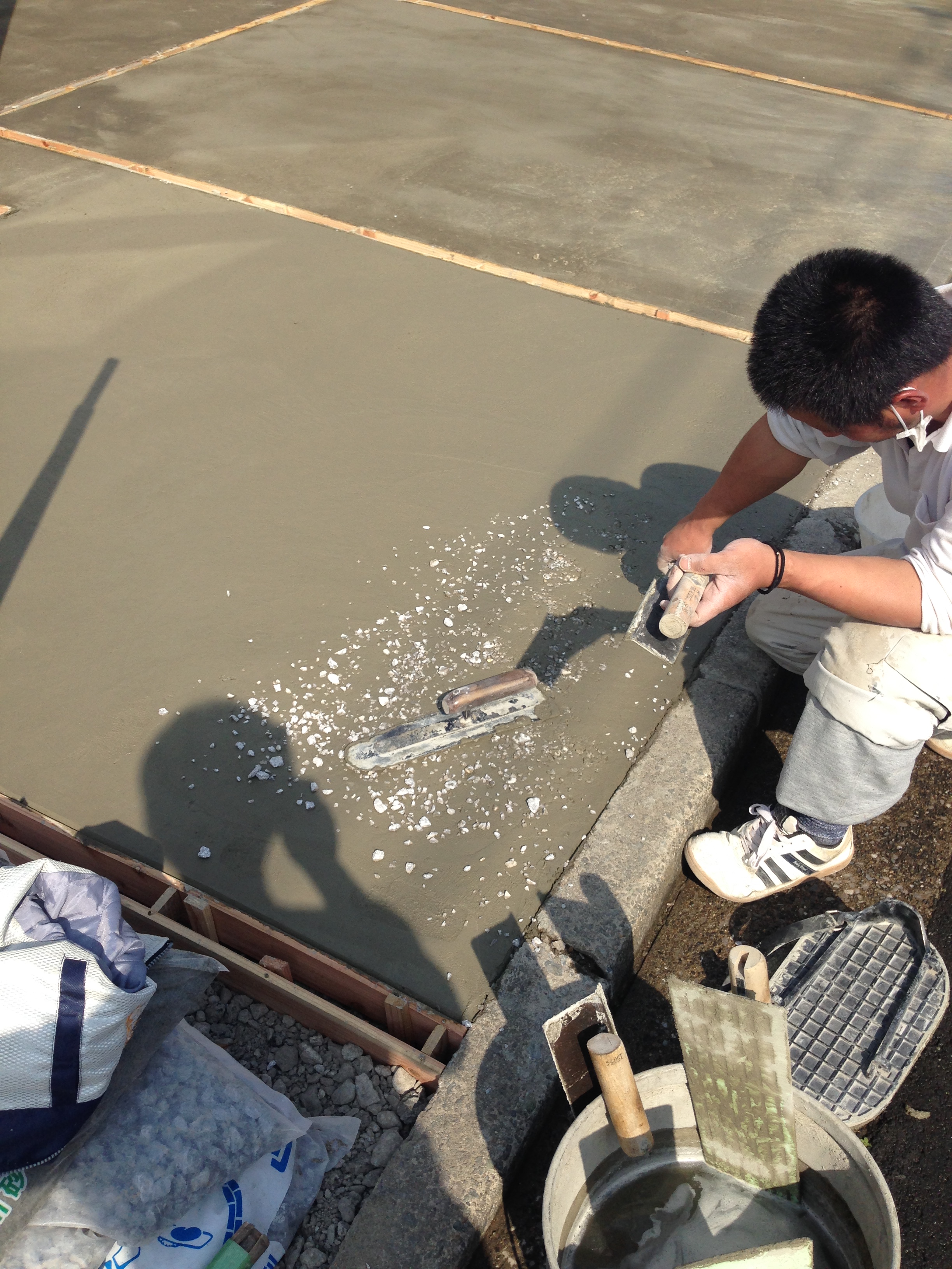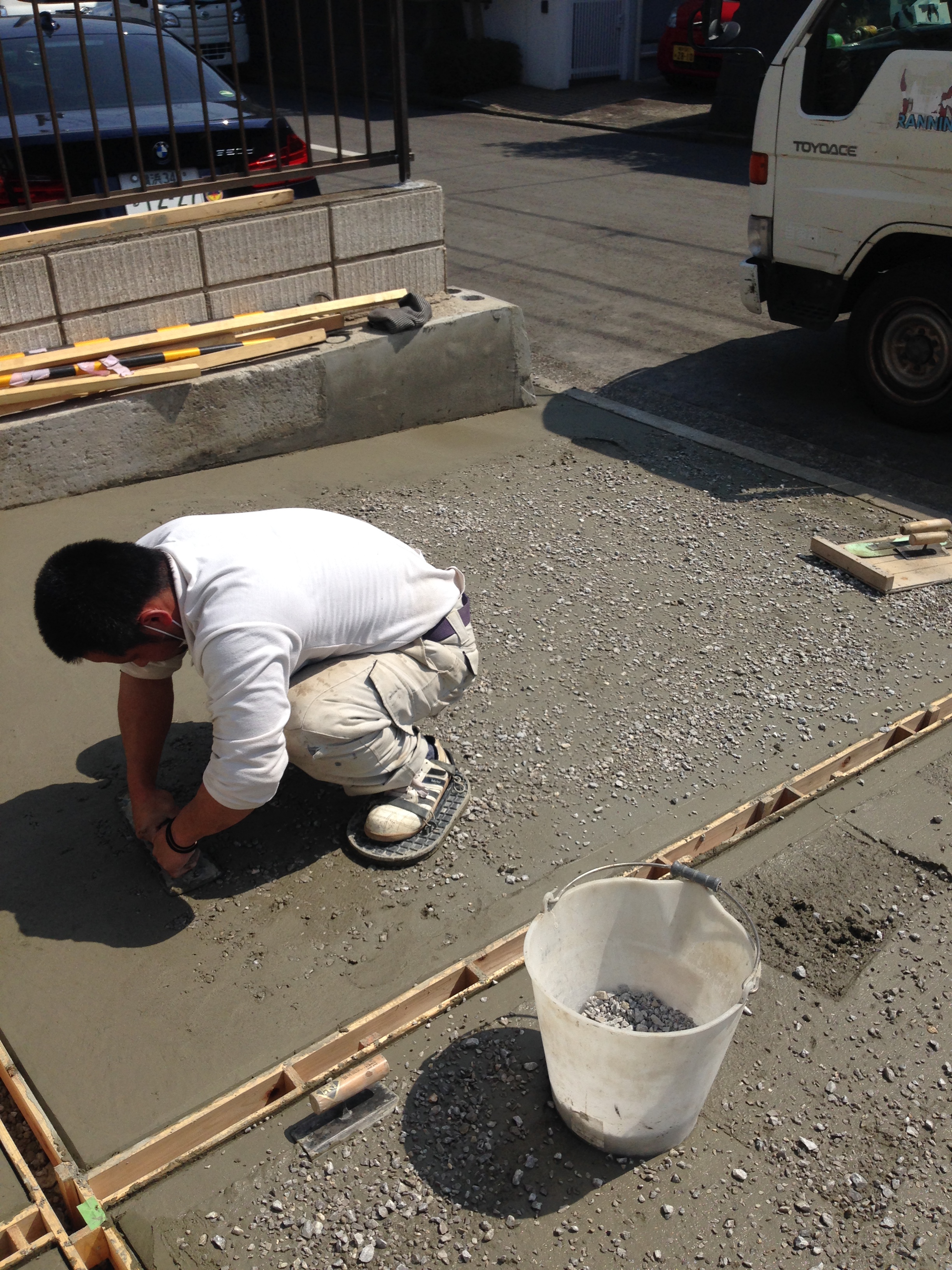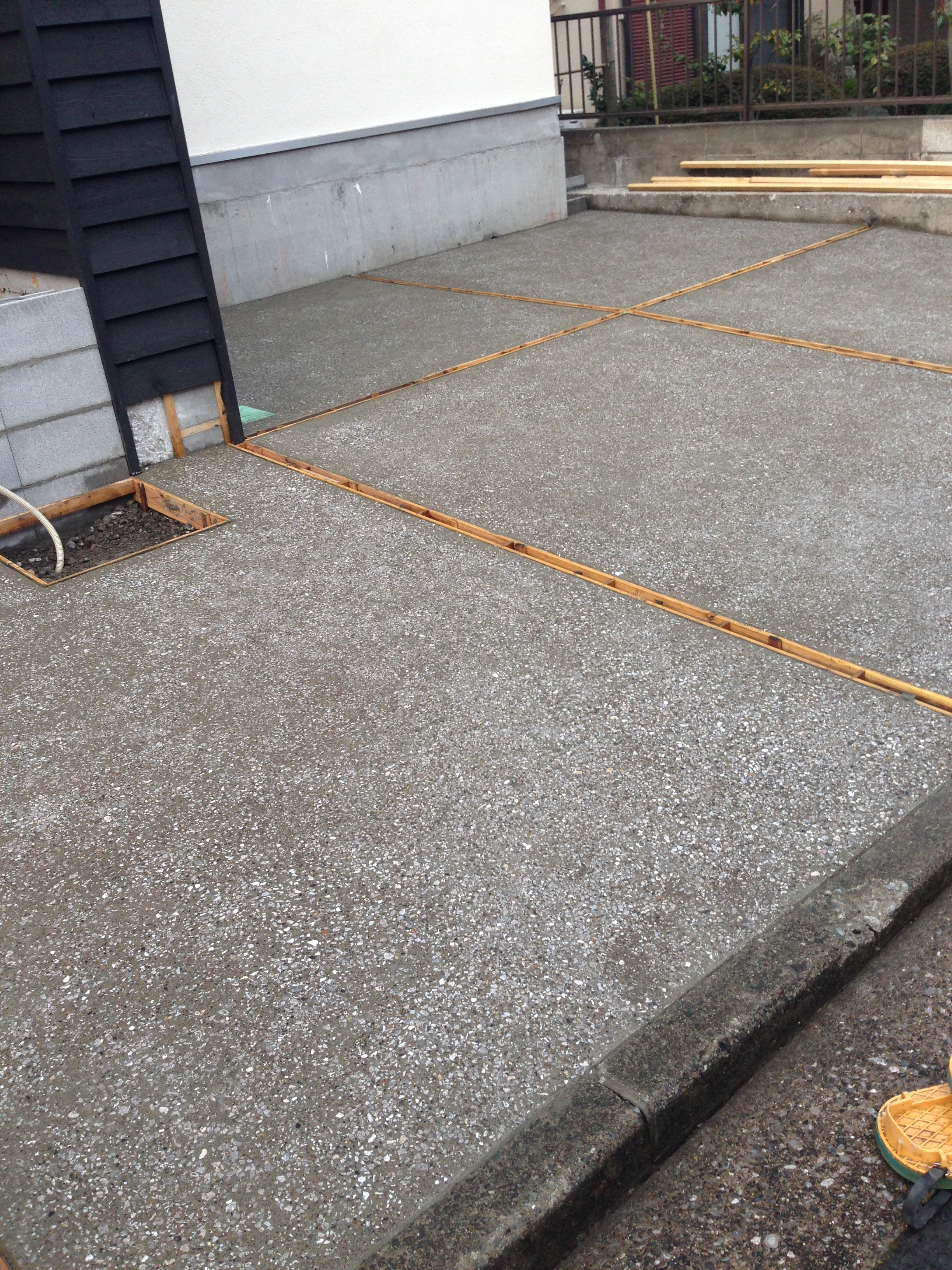 以前ブログで紹介した洗い出しコンクリートとは違い、今回は更に一手間加えた洗い出しコンクリートを施工したのでご紹介いたします。