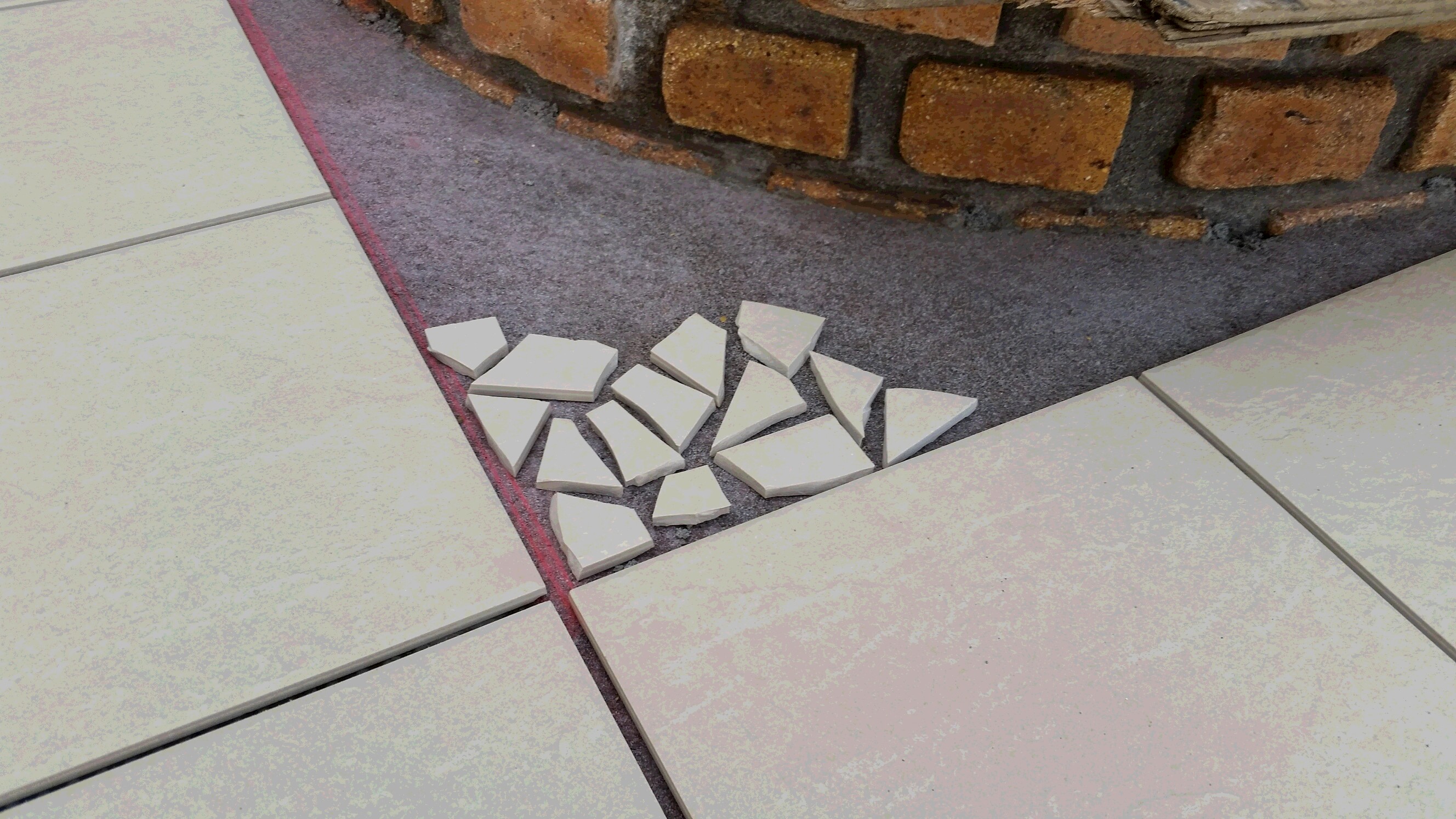 この手のレンガは、普通に積んでいくより、所どころを凹凸にしてみたりわざと半分に割り角を落としオールドチックに加工!