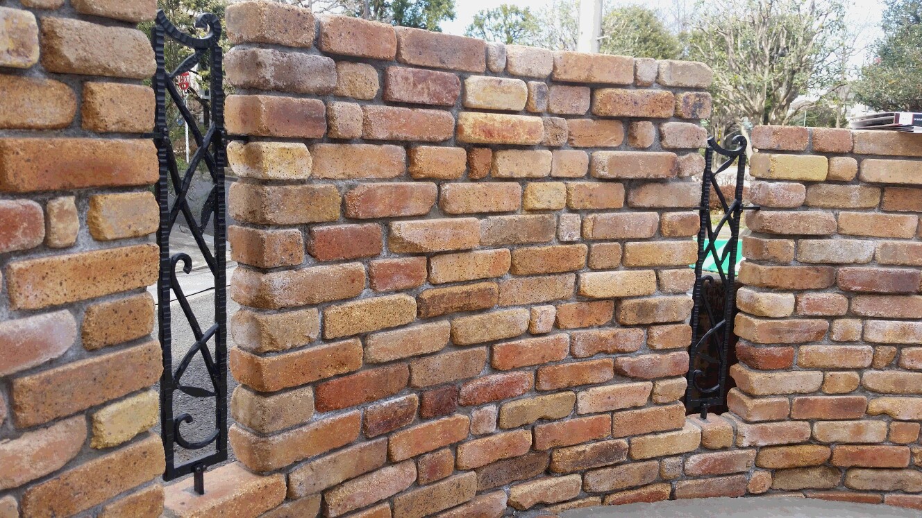 表札・ポストを取り付けるメインの門袖は、アンティークレンガと塗装を施したエイジングな仕上がりになる予定!作業工程を報告したいと思います(^^)