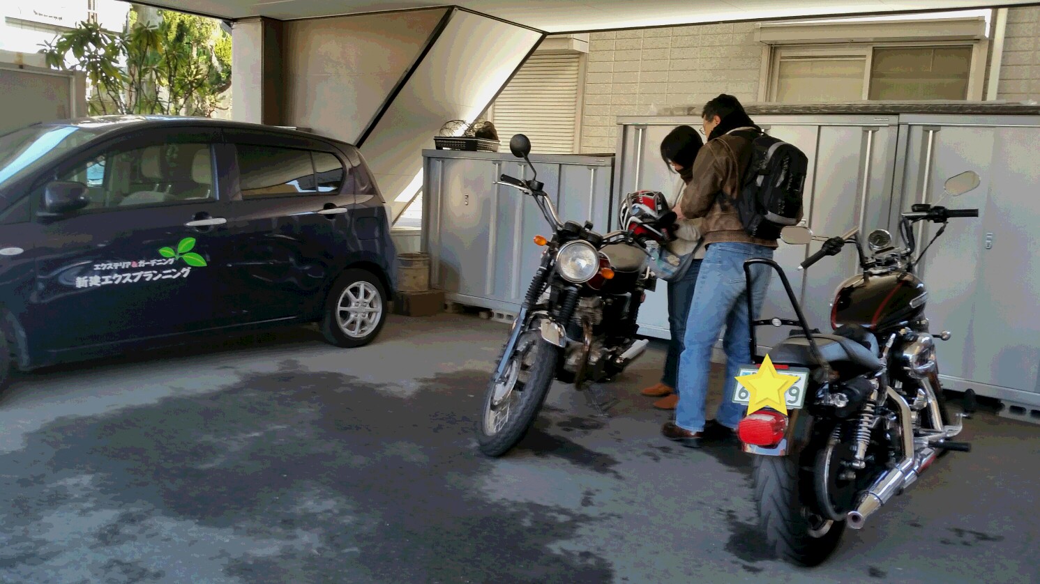 ジーンズに革ジャン、ヘルメットを装着してサングラス、なんて格好良いご夫婦なんでしょう!これだけ立派なバイクなら何処へでもツーリングへ出掛けられそうです。