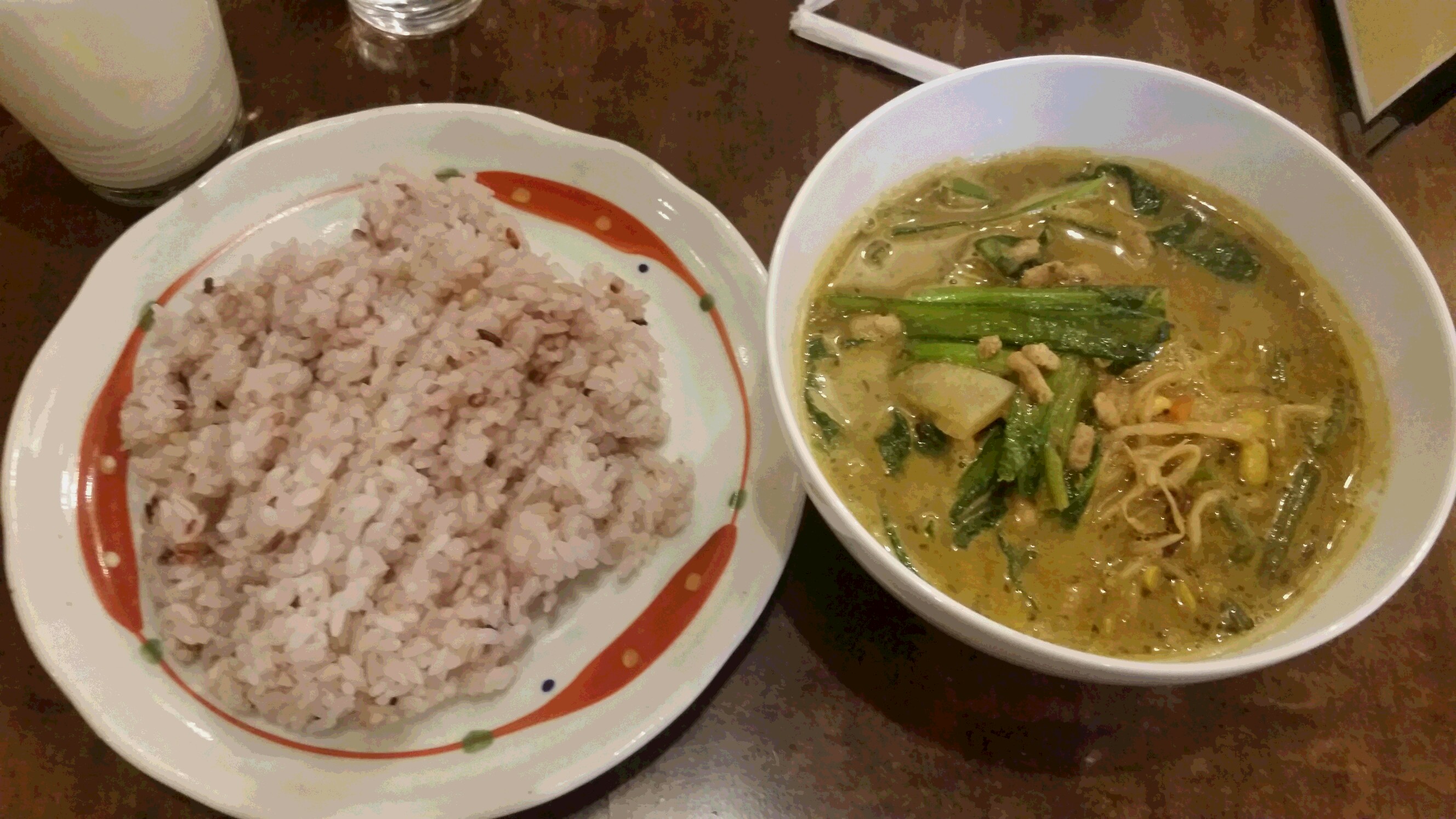 私が注文するのはタイスープに具はビビンバ!ご飯の量は普通で辛さは後ろの方の汗だく間違いなし!そして飲み物はラッシー。