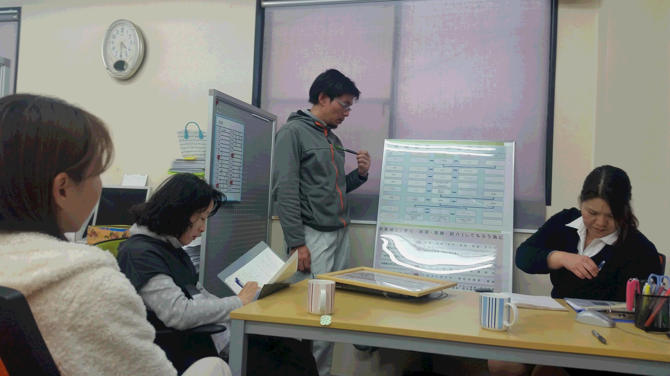 状況確認の後には、現在の作業フローのブラッシュアップ、そして現在足らない事、目標に向かって遣るべき事を確認し合い明日からの仕事に向かいます。