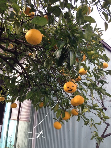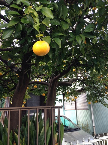 美味しそうな甘夏がいっぱいなっていたんで、「すごいなー」と見渡していたところで・・・・