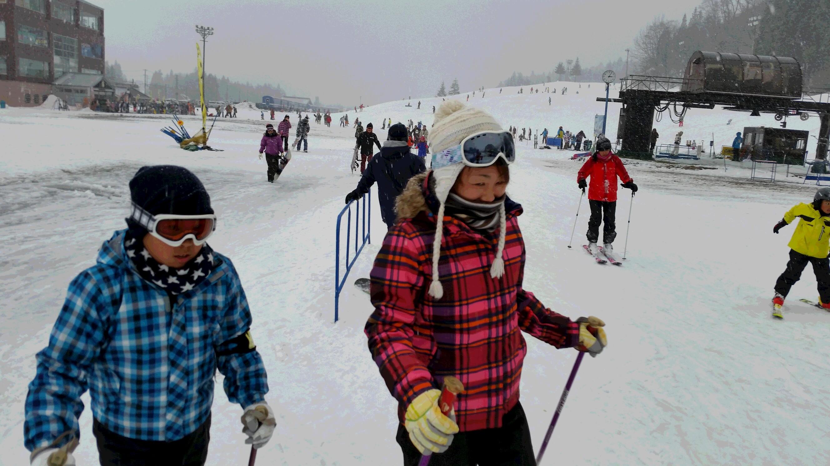 まさしく関越トンネルを抜けると雪景色、スキー場は霧が濃く山頂は風が冷たく吹雪の一歩手前の様なコンディション・・、