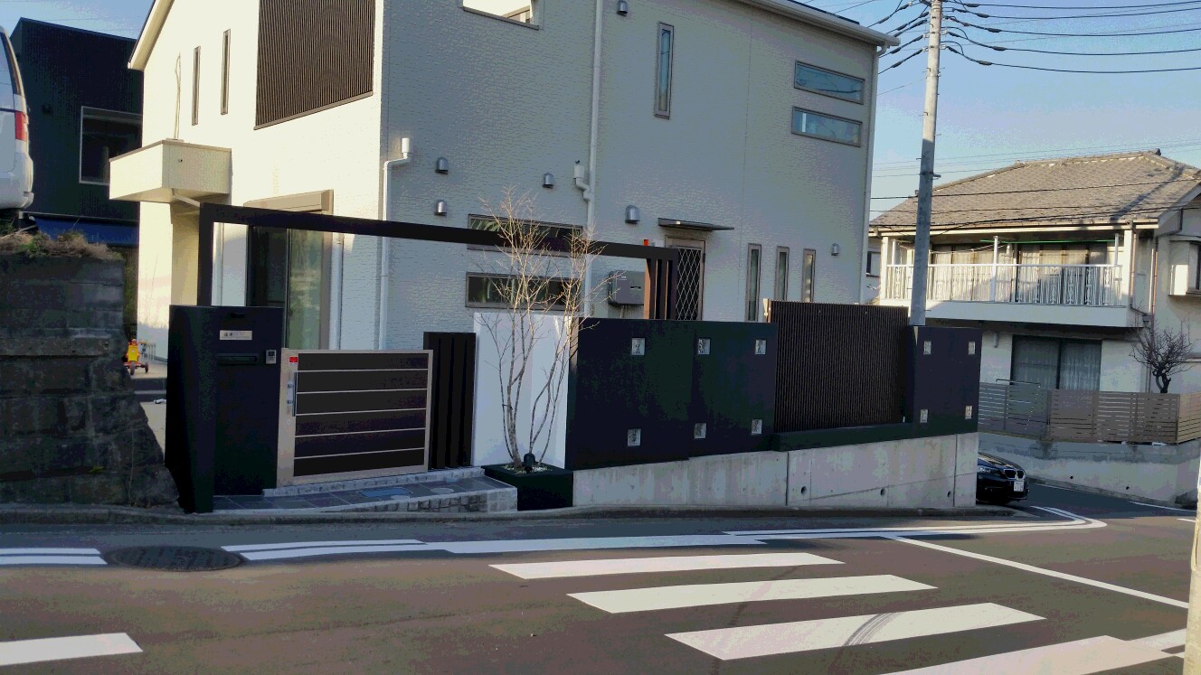 参考プラン作成から始まり、細かくイメージを修正しながら話を煮詰めていき、モノトーンな門まわりエクステリアの完成です。