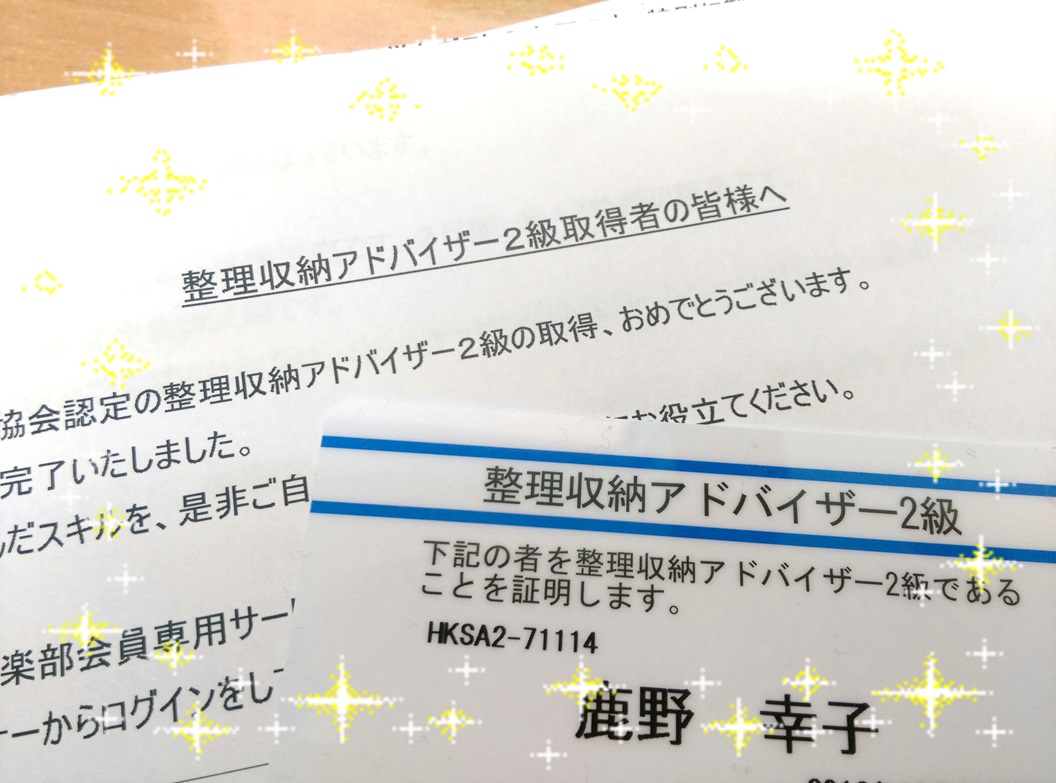 12月に受講した整理収納アドバイザーの認定書が届きました~\(^o^)/